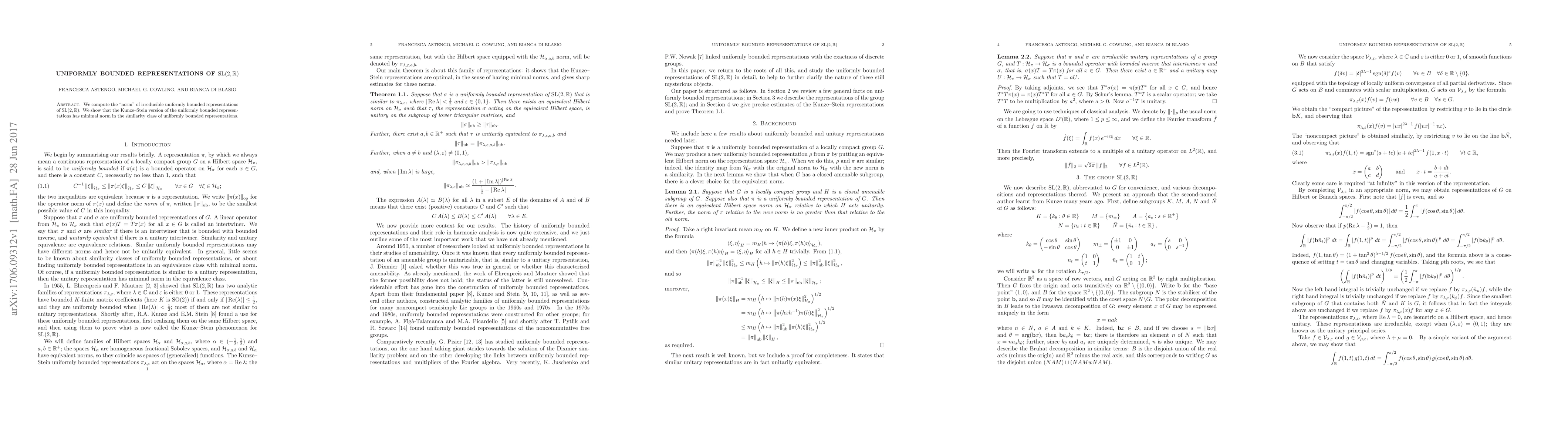 We compute the "norm" of irreducible uniformly bounded representations of SL2R. We show that the Kunze-Stein version of the uniformly bounded representations has minimal norm in the similarity class of uniformly bounded representations.