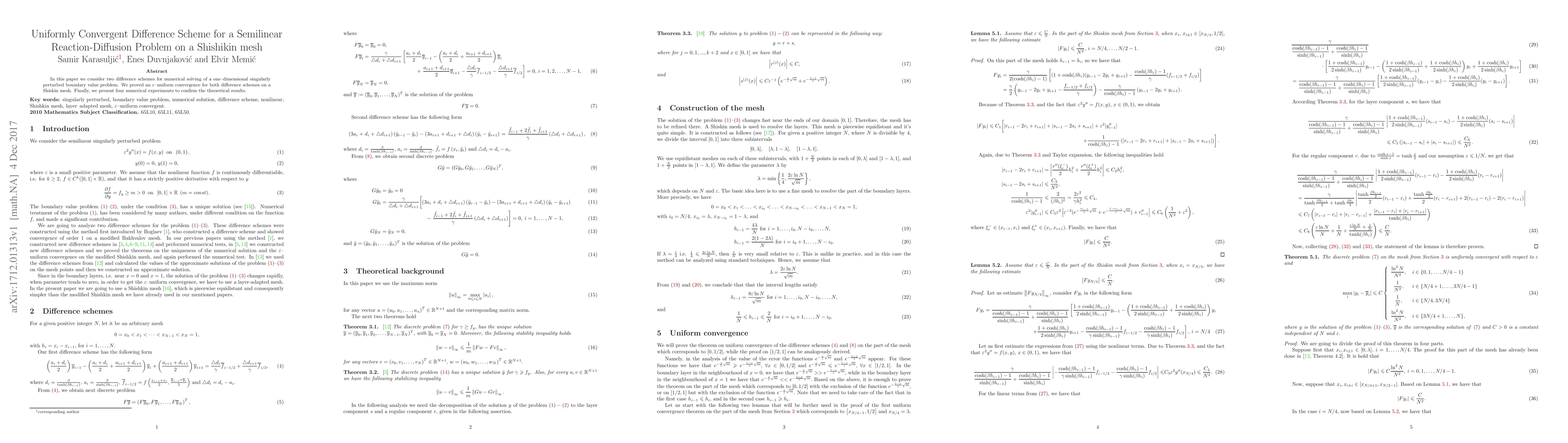 Two difference schemes for solving a reaction-diffusion problem on Shishin mesh were proven to converge uniformly with epsilon accuracy through numerical experiments.