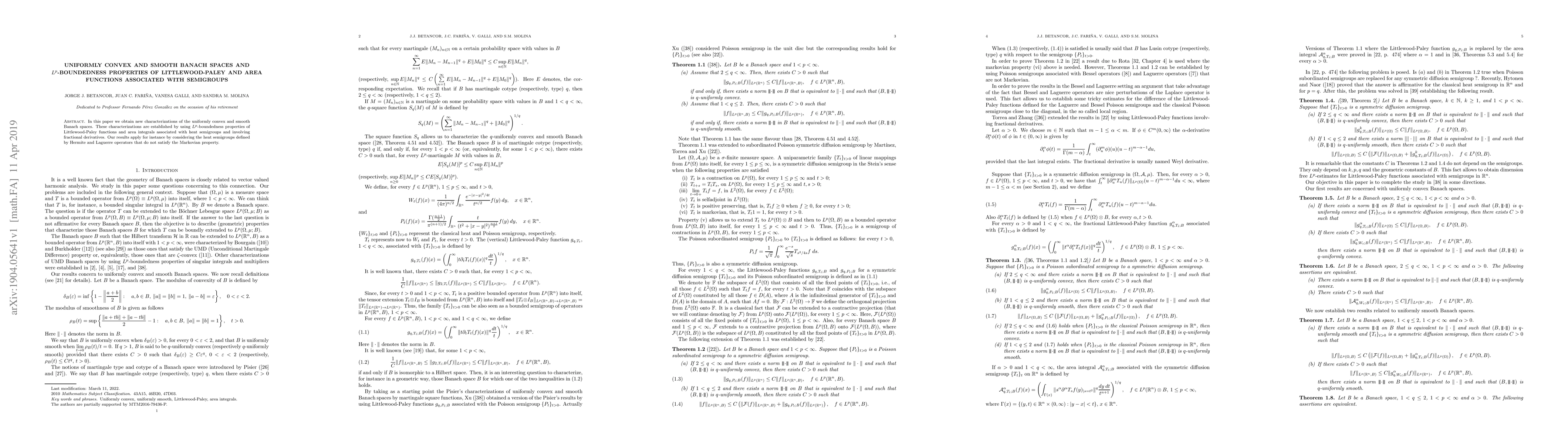 This paper provides new characterizations of uniformly convex and smooth Banach spaces through the Lp-boundedness properties of Littlewood-Paley functions and area integrals linked to heat semigroups, including those defined by Hermite and Laguerre operators. These results extend beyond Markovian semigroups.