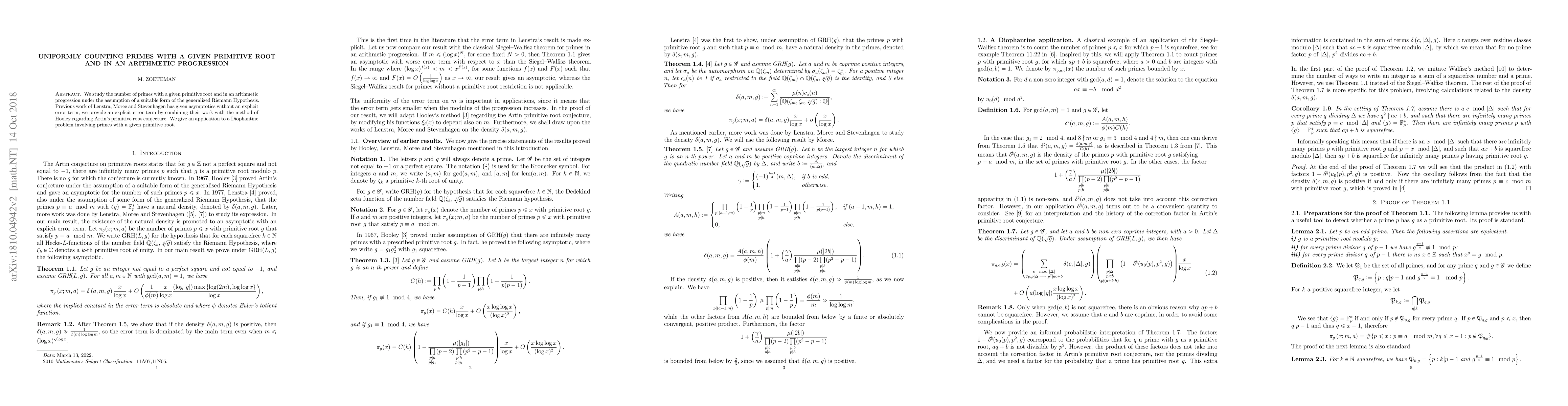 This paper investigates the count of primes sharing a specific primitive root and located in an arithmetic progression, deriving an explicit error term under the generalized Riemann Hypothesis by integrating previous asymptotic results with Hooley's method for Artin's primitive root conjecture. It also applies the findings to a Diophantine problem.