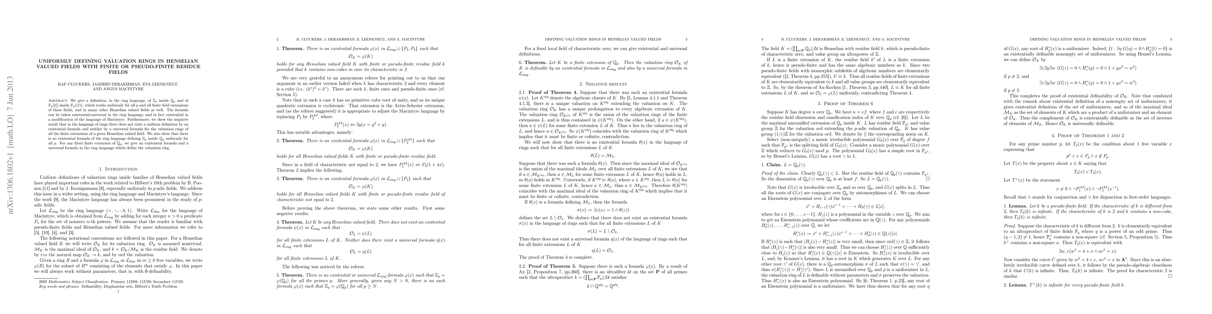 We give a definition, in the ring language, of Z_p inside Q_p and of F_p[[t]] inside F_p((t)), which works uniformly for all $p$ and all finite field extensions of these fields, and in many other Henselian valued fields as well. The formula can be taken existential-universal in the ring language, and in fact existential in a modification of the language of Macintyre. Furthermore, we show the negative result that in the language of rings there does not exist a uniform definition by an existential formula and neither by a universal formula for the valuation rings of all the finite extensions of a given Henselian valued field. We also show that there is no existential formula of the ring language defining Z_p inside Q_p uniformly for all p. For any fixed finite extension of Q_p, we give an existential formula and a universal formula in the ring language which define the valuation ring.