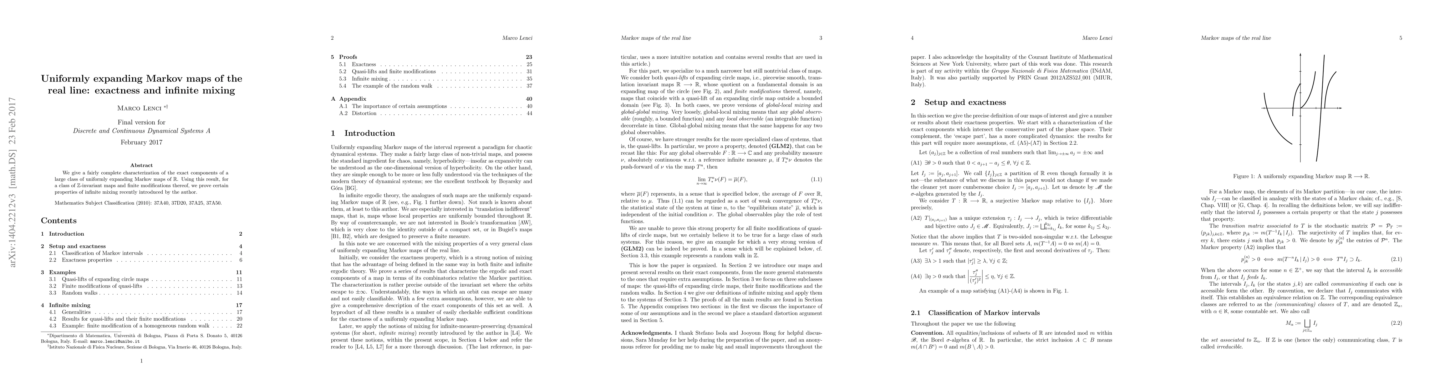 We give a fairly complete characterization of the exact components of a large class of uniformly expanding Markov maps of $\mathbb{R}$. Using this result, for a class of $\mathbb{Z}$-invariant maps and finite modifications thereof, we prove certain properties of infinite mixing recently introduced by the author.