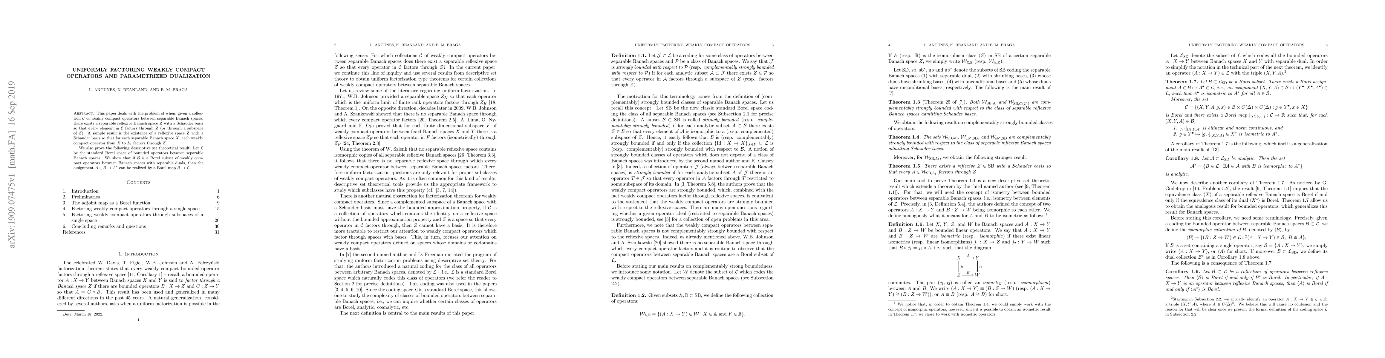 This paper explores the existence of a separable reflexive Banach space with a Schauder basis that factors weakly compact operators from separable Banach spaces to $L_1$, and introduces a Borel map relating bounded operators between separable Banach spaces.