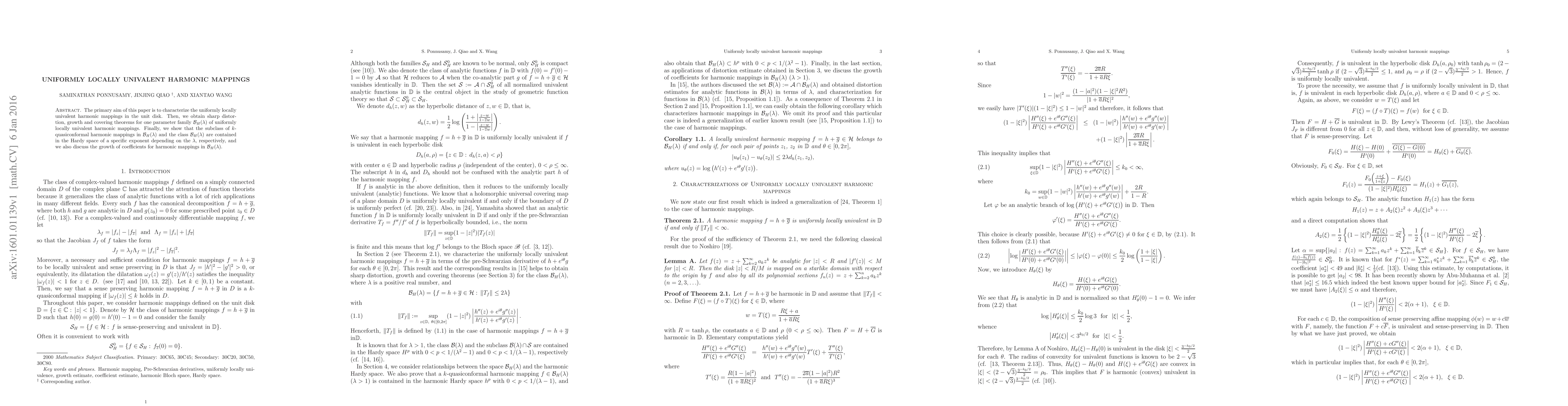 The primary aim of this paper is to characterize the uniformly locally univalent harmonic mappings in the unit disk. Then, we obtain sharp distortion, growth and covering theorems for one parameter family ${\mathcal B}_{H}(\lambda)$ of uniformly locally univalent harmonic mappings. Finally, we show that the subclass of $k$-quasiconformal harmonic mappings in ${\mathcal B}_{H}(\lambda)$ and the class ${\mathcal B}_{H}(\lambda)$ are contained in the Hardy space of a specific exponent depending on the $\lambda$, respectively, and we also discuss the growth of coefficients for harmonic mappings in ${\mathcal B}_{H}(\lambda)$.