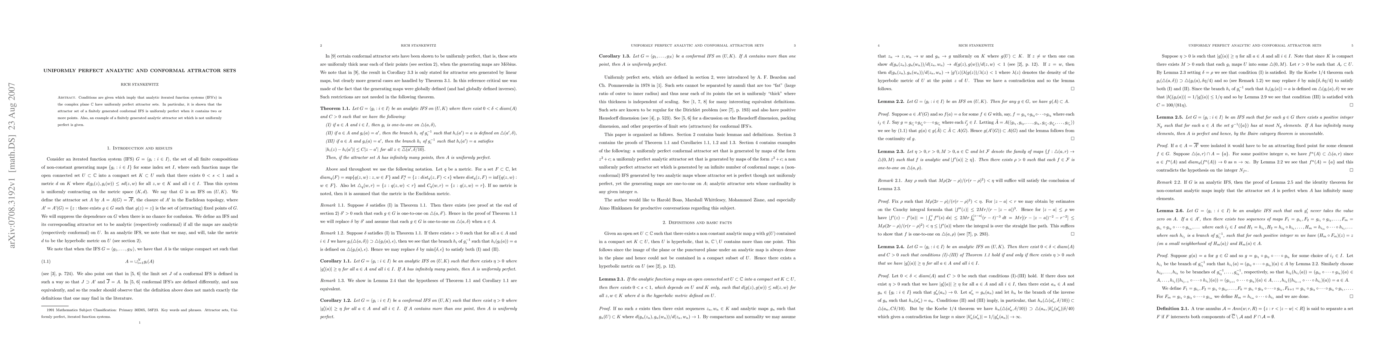 This paper identifies conditions under which analytic iterated function systems in the complex plane yield uniformly perfect attractor sets. It proves that finitely generated conformal IFS's with at least two points in their attractors are uniformly perfect, and provides an example of a finitely generated analytic attractor set that is not uniformly perfect.