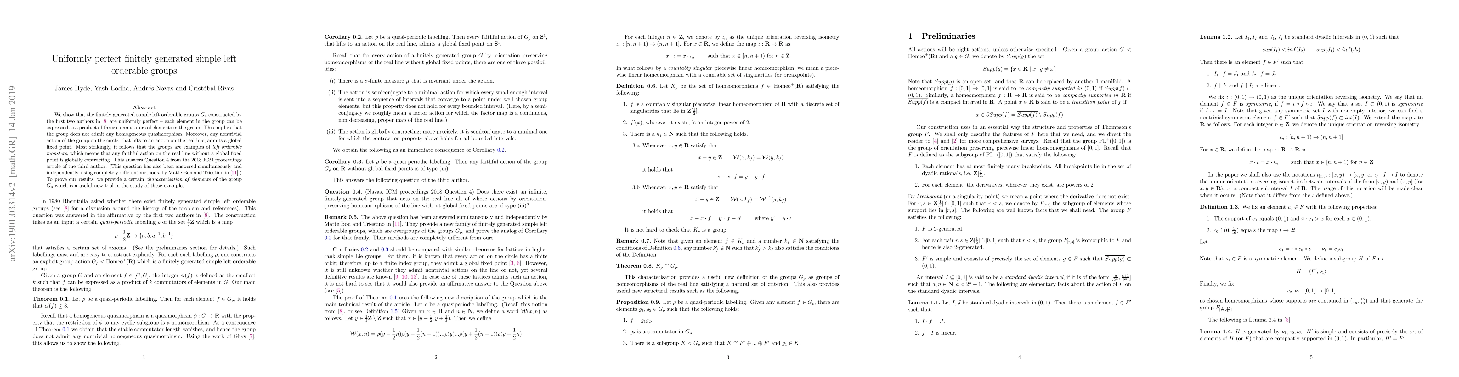 This paper demonstrates that the finitely generated simple left orderable groups $G_{\rho}$ are uniformly perfect, meaning each element can be expressed as a product of three commutators, implying the absence of homogeneous quasimorphisms and fixed-point-free actions on the real line. This resolves Question 4 from the 2018 ICM proceedings, establishing these groups as "left orderable monsters."