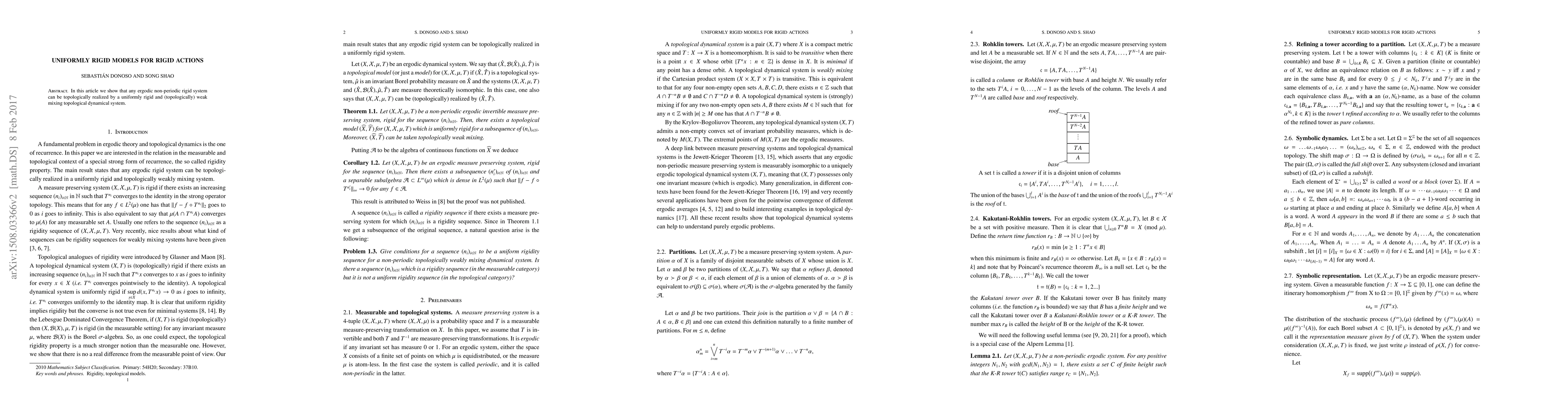 The paper presents a detailed construction method for uniformly rigid models for rigid actions, including the use of good sequences of functions and tower modifications to ensure rigidity and weak mixing properties.