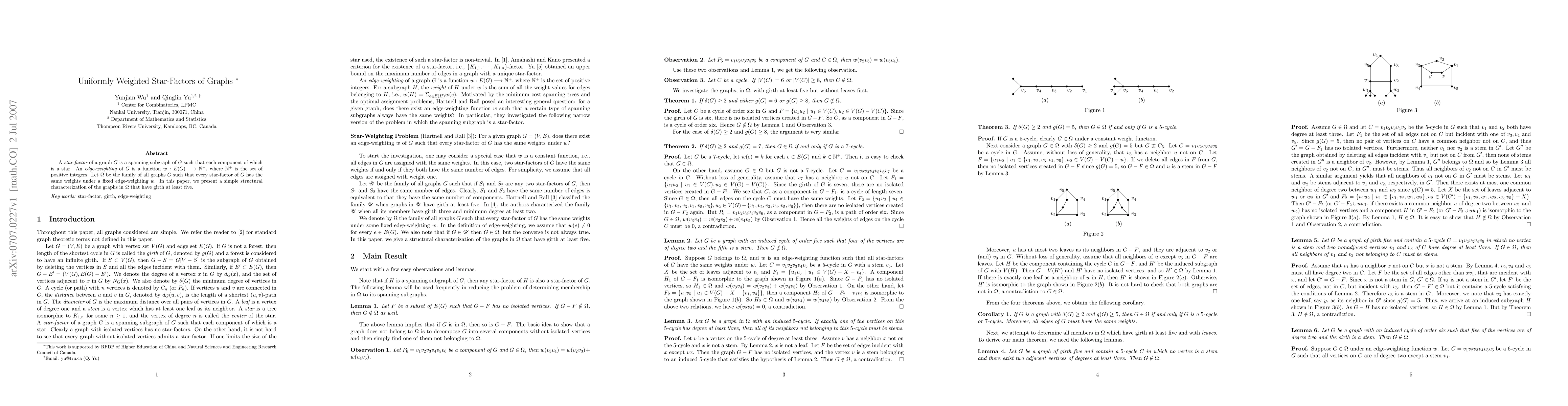 A {\it star-factor} of a graph $G$ is a spanning subgraph of $G$ such that each component of which is a star. An {\it edge-weighting} of $G$ is a function $w: E(G)\longrightarrow \mathbb{N}^+$, where $\mathbb{N}^+$ is the set of positive integers. Let $\Omega$ be the family of all graphs $G$ such that every star-factor of $G$ has the same weights under a fixed edge-weighting $w$. In this paper, we present a simple structural characterization of the graphs in $\Omega$ that have girth at least five.