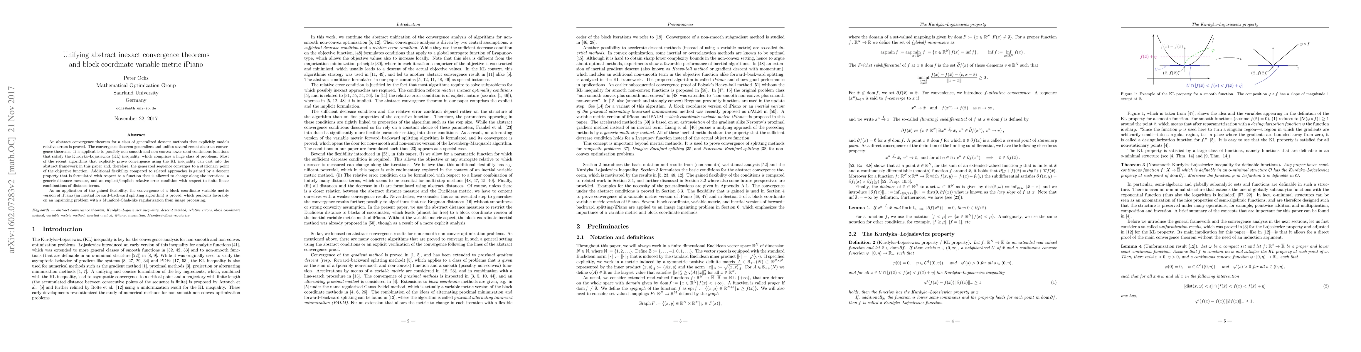 This paper proves an abstract convergence theorem for generalized descent methods that model relative errors, unifying several recent theorems and applying to non-smooth, non-convex functions satisfying the Kurdyka-Lojasiewicz inequality. It also demonstrates the convergence of a block coordinate variable metric iPiano algorithm for an image inpainting problem.