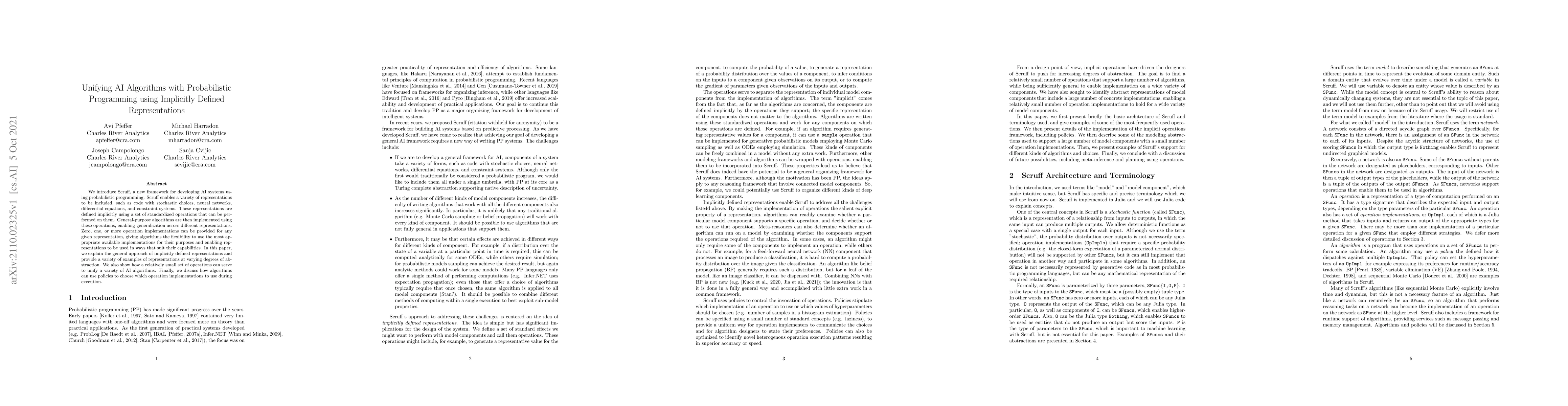 This paper introduces Scruff, a framework for AI systems using probabilistic programming that unifies various AI representations through implicitly defined operations. It demonstrates how a small set of standardized operations can generalize across diverse representations, allowing flexible algorithm implementation.