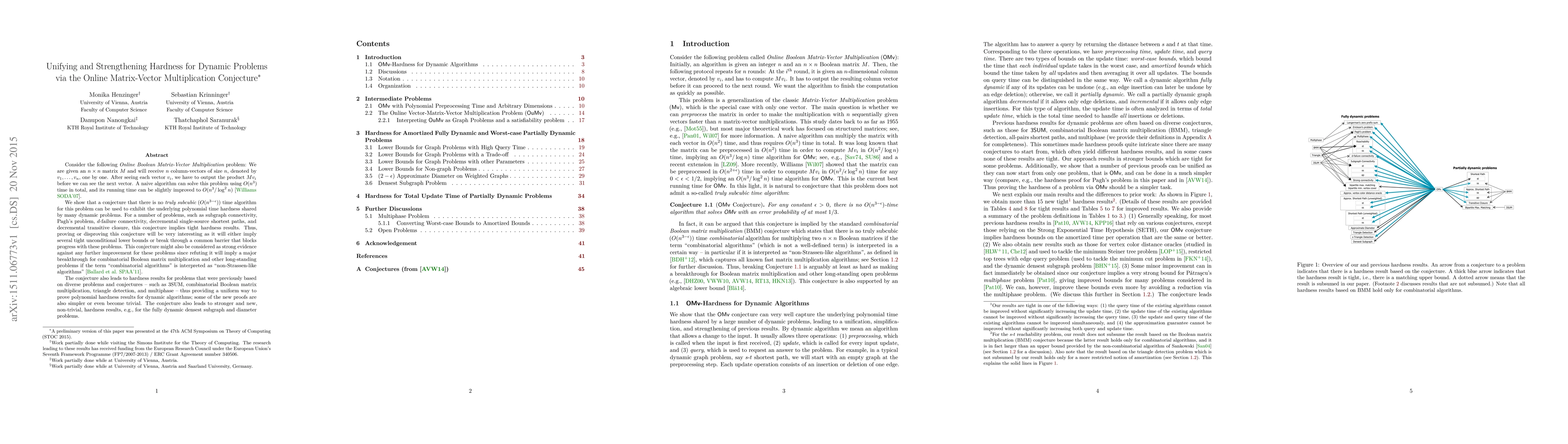 This paper proposes the Online Matrix-Vector Multiplication Conjecture as a unifying framework to demonstrate polynomial time hardness for various dynamic problems, including subgraph connectivity and decremental single-source shortest paths. Proving or disproving this conjecture could either establish tight unconditional lower bounds or break through a common barrier in dynamic algorithms research.