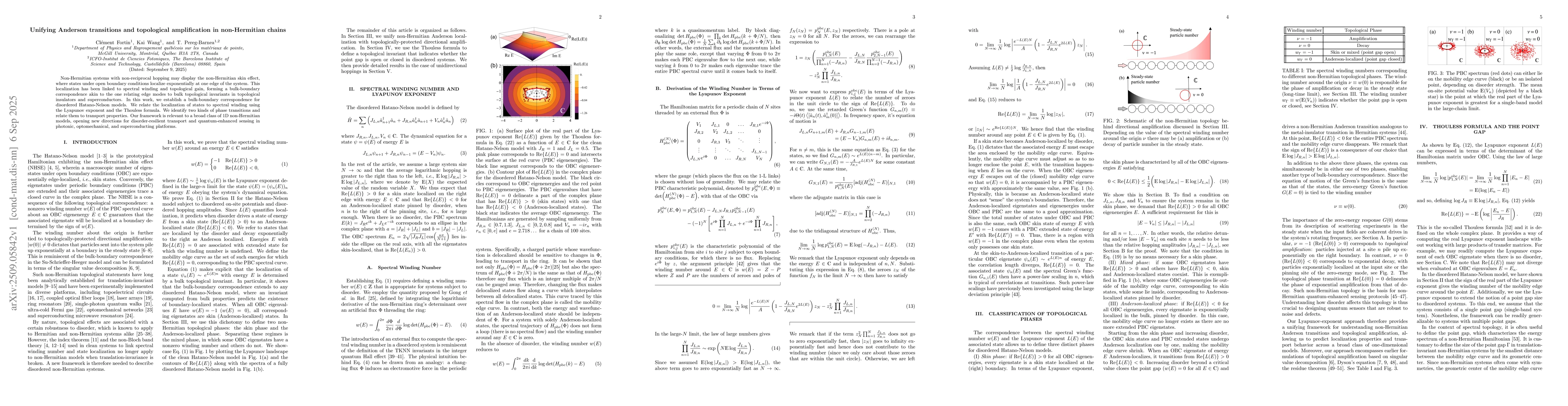 Non-Hermitian systems with non-reciprocal hopping may display the non-Hermitian skin effect, where states under open boundary conditions localize exponentially at one edge of the system. This localization has been linked to spectral winding and topological gain, forming a bulk-boundary correspondence akin to the one relating edge modes to bulk topological invariants in topological insulators and superconductors. In this work, we establish a bulk-boundary correspondence for disordered Hatano-Nelson models. We relate the localization of states to spectral winding using the Lyapunov exponent and the Thouless formula. We identify two kinds of phase transitions and relate them to transport properties. Our framework is relevant to a broad class of 1D non-Hermitian models, opening new directions for disorder-resilient transport and quantum-enhanced sensing in photonic, optomechanical, and superconducting platforms.
