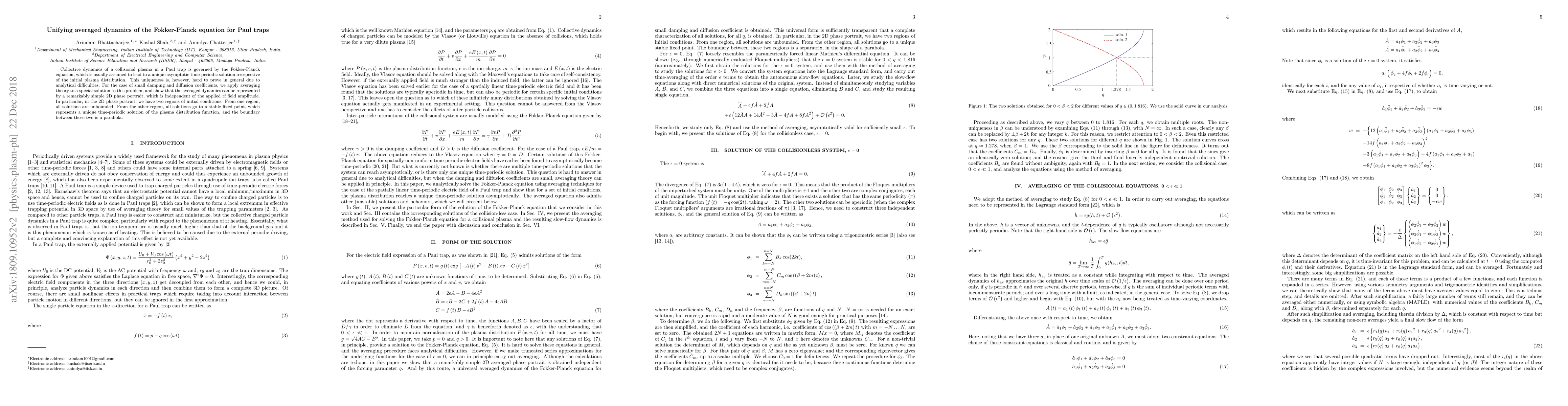 Researchers applied averaging theory to the Fokker-Planck equation for Paul traps, revealing a simple 2D phase portrait that predicts two regions of initial conditions: one leading to unbounded solutions and the other to a stable fixed point representing a unique time-periodic solution.