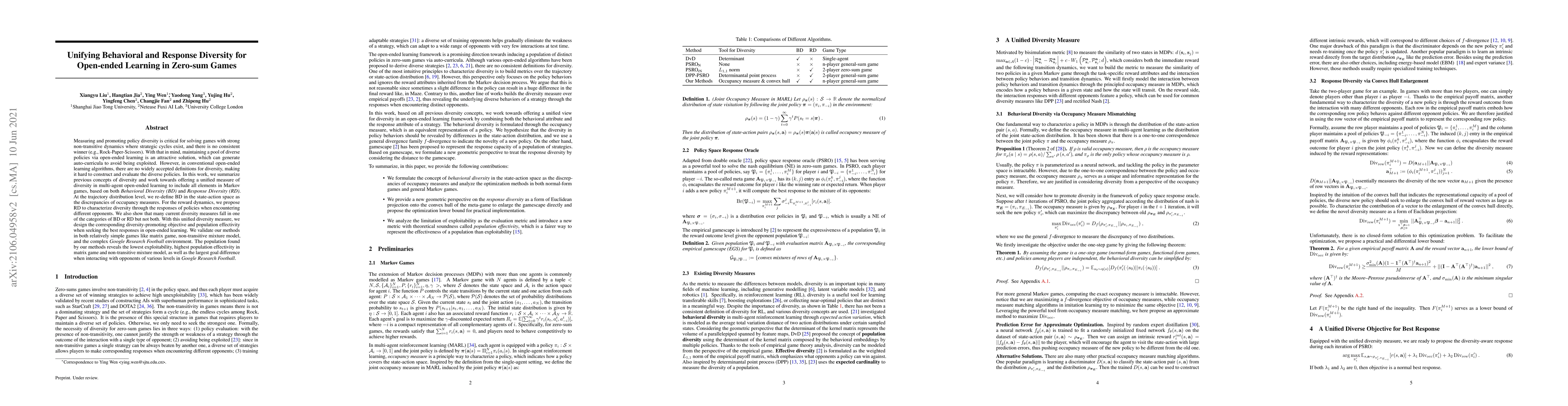 This paper proposes a unified measure of diversity in multi-agent open-ended learning for zero-sum games, combining Behavioral Diversity and Response Diversity. It redefines Behavioral Diversity in the state-action space and introduces Response Diversity to characterize policy responses to different opponents, aiming to generate diverse policies to avoid exploitation.
