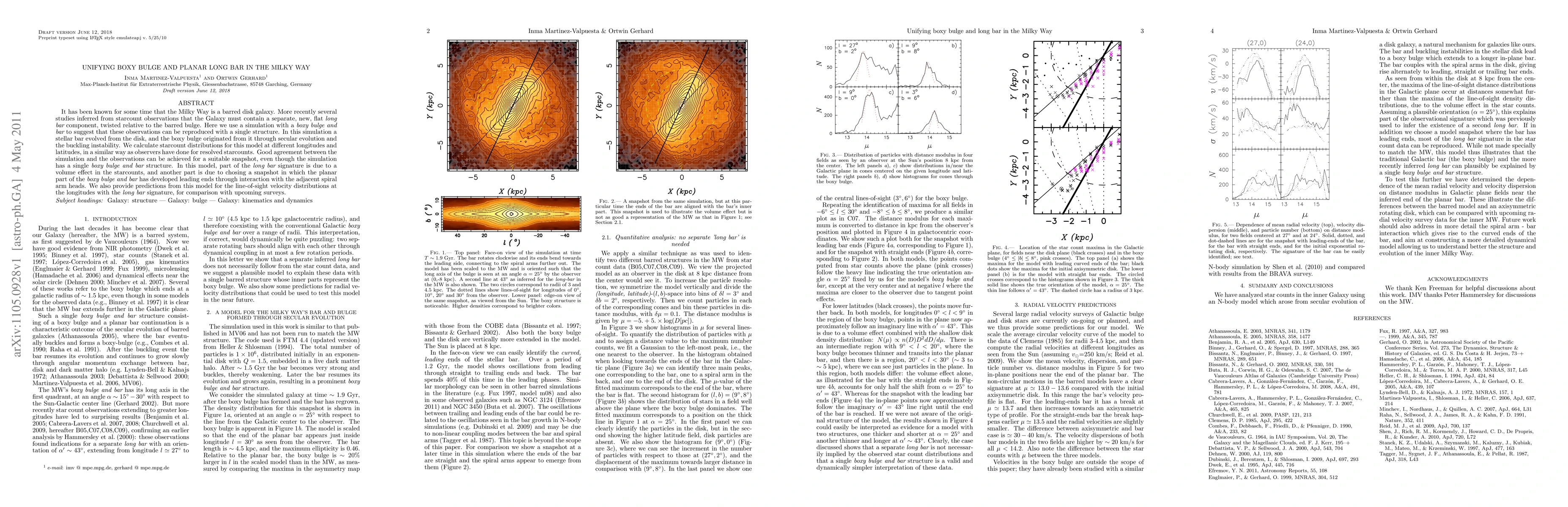 This paper proposes that the Milky Way's boxy bulge and planar long bar can be unified into a single structure through simulation. The study suggests that the observed separate long bar component may arise from a volume effect and a specific snapshot of the evolving stellar bar and boxy bulge.