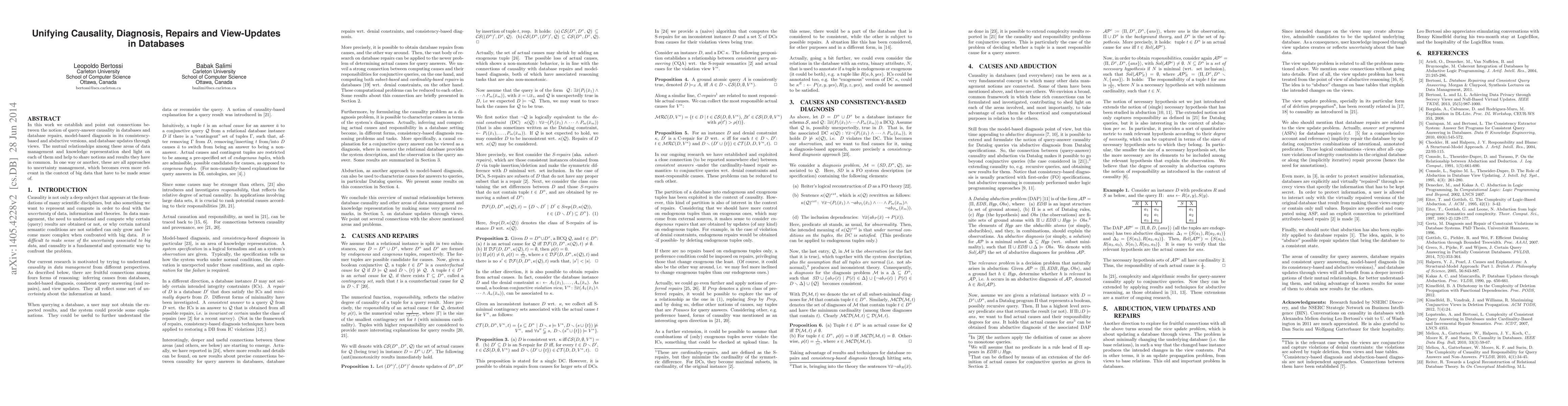 In this work we establish and point out connections between the notion of query-answer causality in databases and database repairs, model-based diagnosis in its consistency-based and abductive versions, and database updates through views. The mutual relationships among these areas of data management and knowledge representation shed light on each of them and help to share notions and results they have in common. In one way or another, these are all approaches to uncertainty management, which becomes even more relevant in the context of big data that have to be made sense of.