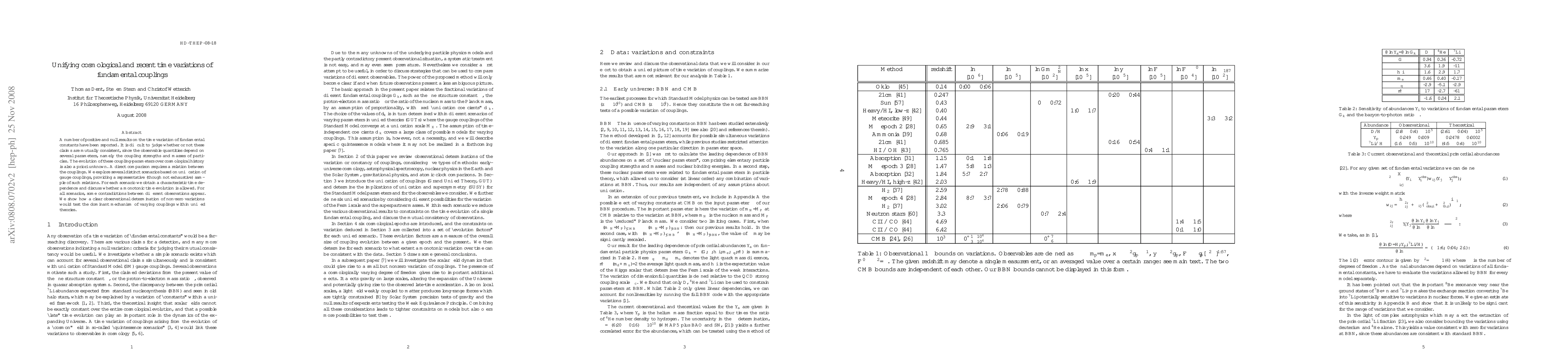 This paper examines the time variation of fundamental constants, exploring various unification scenarios for gauge couplings to determine their time dependence. It finds contradictions between different observations and highlights that a clear detection of non-zero variations would test the mechanisms of varying couplings in unified theories.