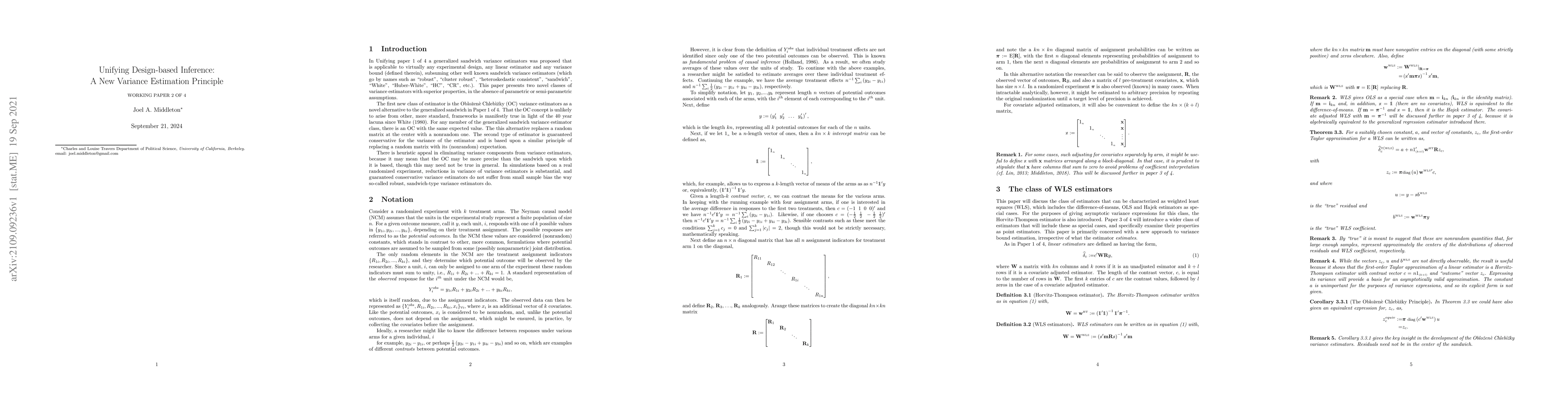 This paper presents two novel classes of variance estimators with superior properties, in the absence of parametric or semi-parametricassumptions. The first new class of estimator is the Oblozene Chlebizky (OC) variance estimators as a novel alternative to the generalized sandwich in Paper 1 of 4. That the OC concept is unlikely to arise from other, more standard, frameworks is manifestly true in light of the 40 year lacuna since White (1980). For any member of the generalized sandwich variance estimator class, there is an OC with the same expected value. The this alternative replaces a random matrix at the center with a nonrandom one. The second type of estimator is guaranteed conservative for the variance of the estimator and is based upon a similar principle of replacing a random matrix with its expectation.