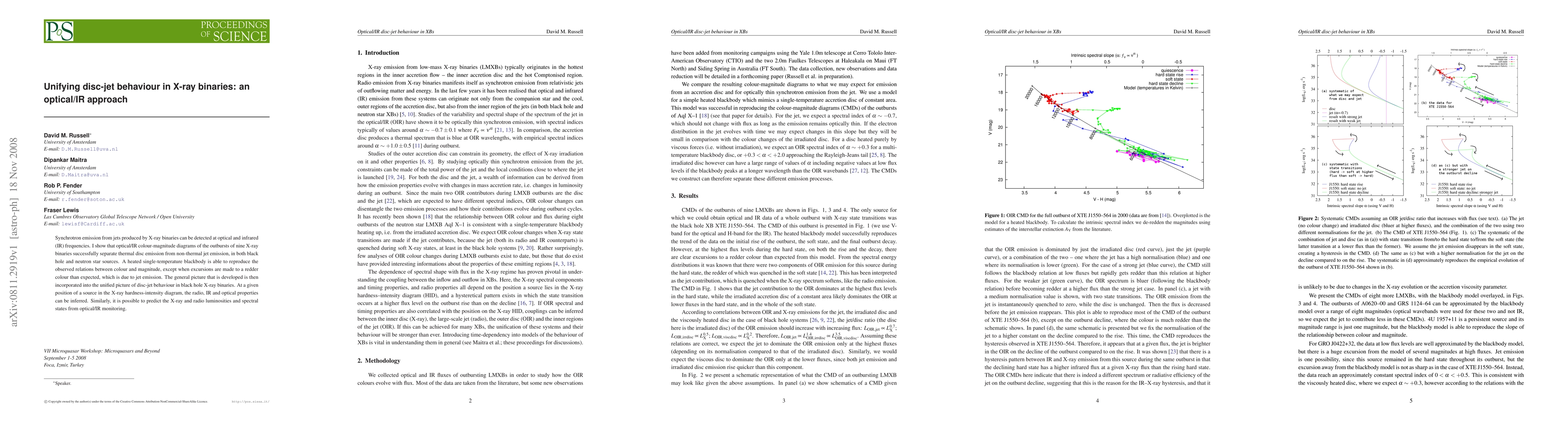Synchrotron emission from jets produced by X-ray binaries can be detected at optical and infrared (IR) frequencies. I show that optical/IR colour-magnitude diagrams of the outbursts of nine X-ray binaries successfully separate thermal disc emission from non-thermal jet emission, in both black hole and neutron star sources. A heated single-temperature blackbody is able to reproduce the observed relations between colour and magnitude, except when excursions are made to a redder colour than expected, which is due to jet emission. The general picture that is developed is then incorporated into the unified picture of disc-jet behaviour in black hole X-ray binaries. At a given position of a source in the X-ray hardness-intensity diagram, the radio, IR and optical properties can be inferred. Similarly, it is possible to predict the X-ray and radio luminosities and spectral states from optical/IR monitoring.