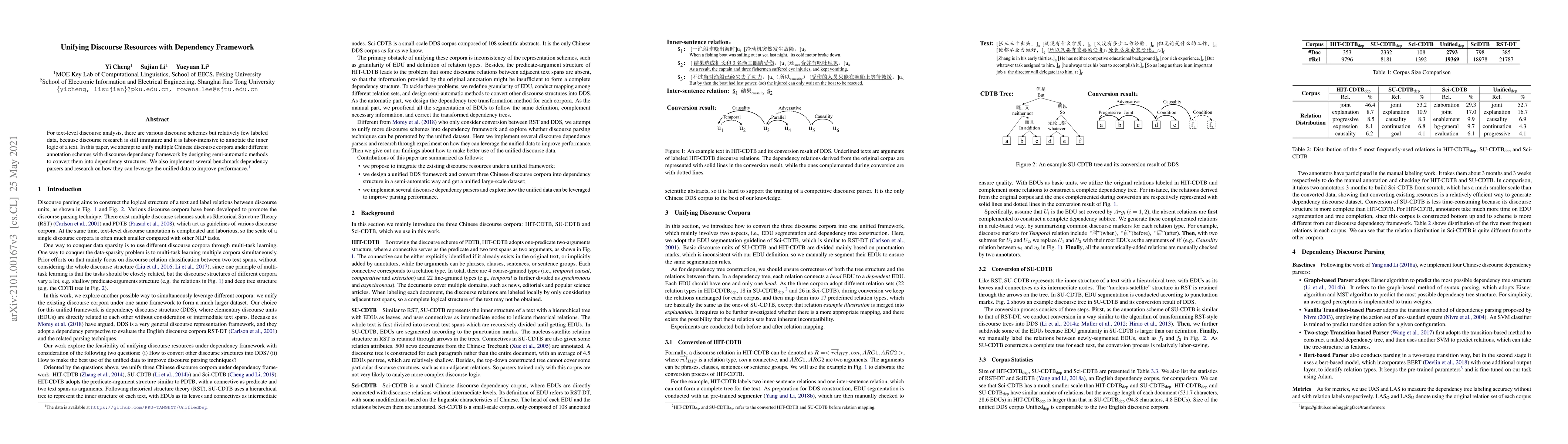 Researchers unified multiple Chinese discourse corpora using a dependency framework to improve text-level discourse analysis, leveraging semi-automatic methods for annotated data conversion and benchmarking dependency parsers.