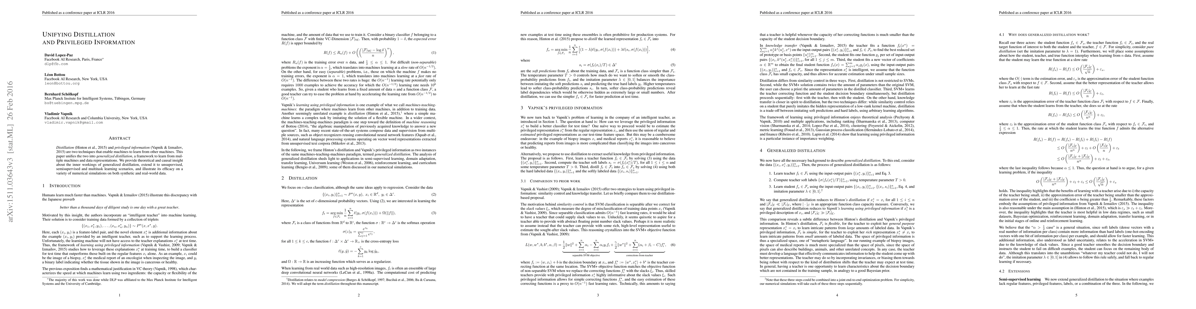 This paper introduces generalized distillation, a framework that unifies distillation and privileged information techniques to enable machine learning from multiple machines and data representations. The authors provide theoretical insights and demonstrate its effectiveness across unsupervised, semi-supervised, and multitask learning scenarios through numerical simulations on synthetic and real-world data.
