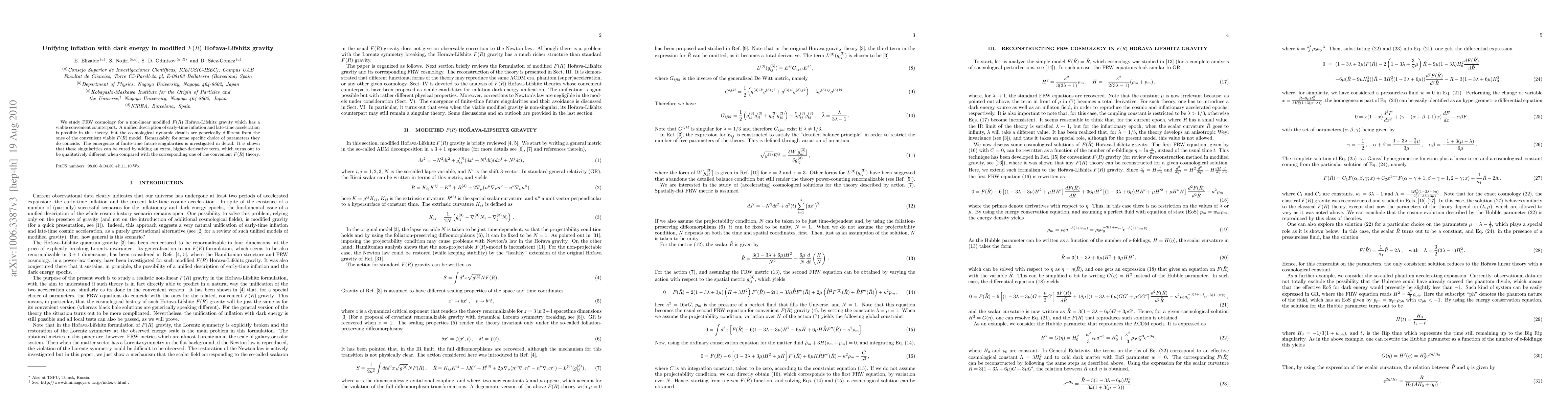 This paper explores a modified F(R) Horava-Lifshitz gravity model that unifies early-time inflation and late-time dark energy acceleration, while differing from conventional F(R) models. It also investigates future singularities, finding they can be resolved by introducing an additional higher-derivative term.