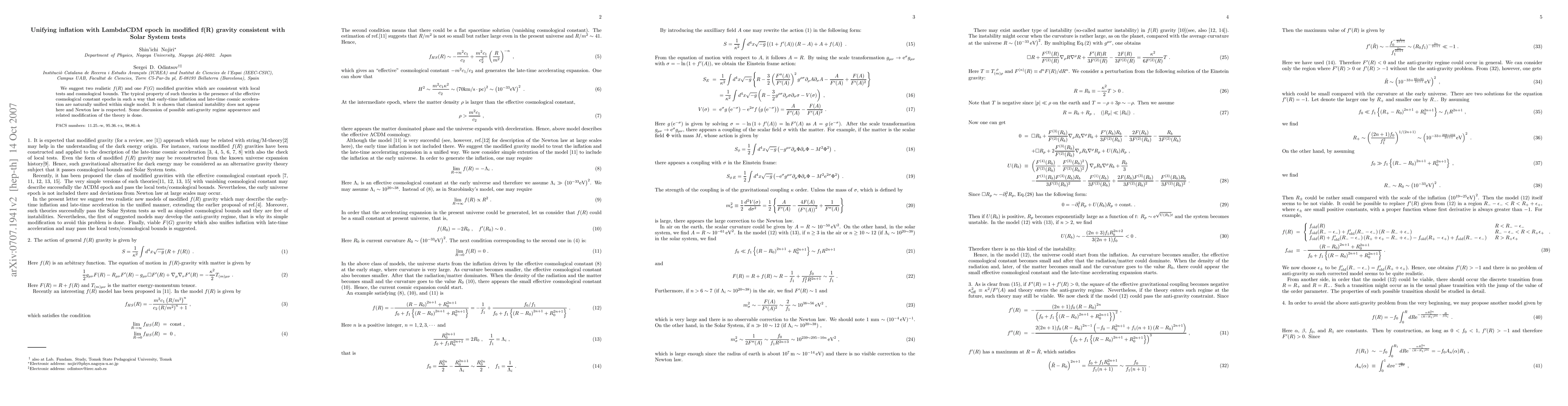 This paper proposes modified gravity models (f(R) and F(G)) that unify early-time inflation and late-time cosmic acceleration while remaining consistent with local tests and cosmological constraints. The models avoid classical instability and respect Newton's law, though the possibility of an anti-gravity regime is briefly discussed.