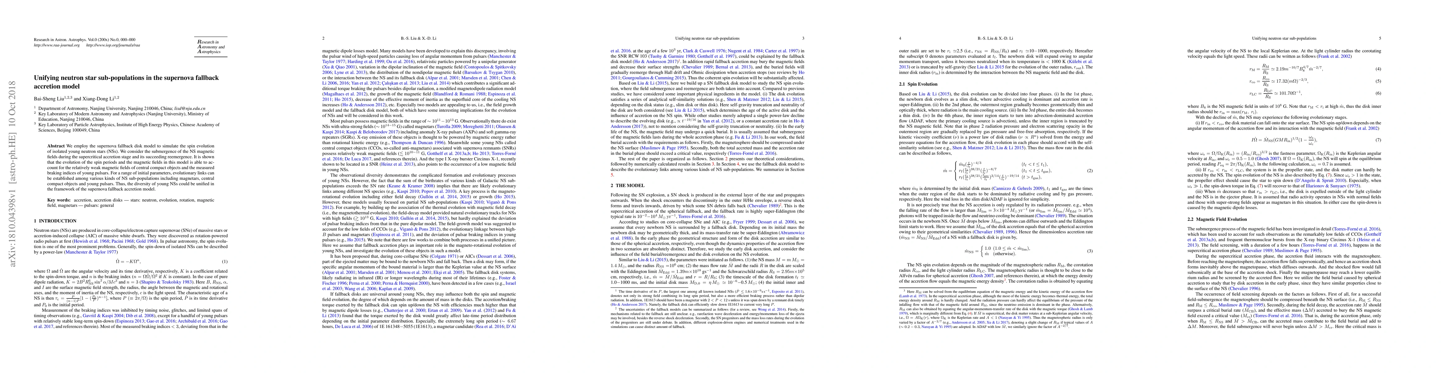This paper uses the supernova fallback accretion model to simulate neutron star spin evolution, showing how it can explain the weak magnetic fields and braking indices of young pulsars. It establishes evolutionary links among different neutron star sub-populations, suggesting a unified framework for their diversity.