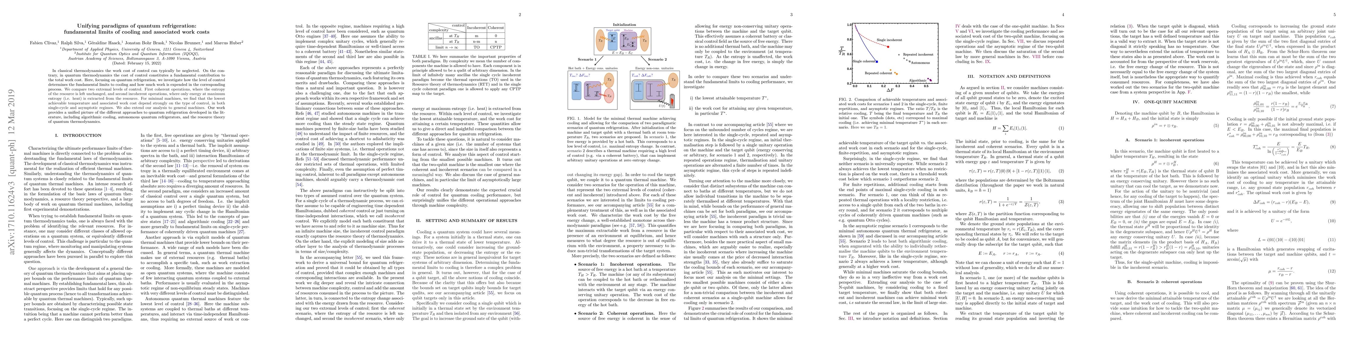 This paper investigates how control in quantum refrigeration affects cooling limits and work costs, finding that both coherent and incoherent operations have significant impacts on performance. It provides a unified picture of different approaches to quantum refrigeration, shedding light on fundamental limits and associated work costs.