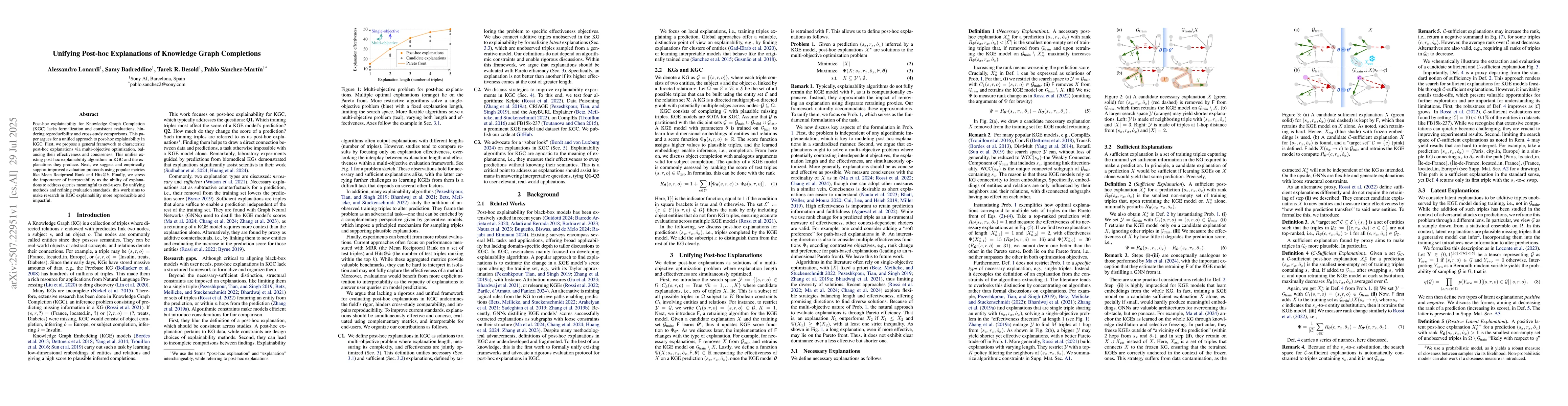 Post-hoc explainability for Knowledge Graph Completion (KGC) lacks formalization and consistent evaluations, hindering reproducibility and cross-study comparisons. This paper argues for a unified approach to post-hoc explainability in KGC. First, we propose a general framework to characterize post-hoc explanations via multi-objective optimization, balancing their effectiveness and conciseness. This unifies existing post-hoc explainability algorithms in KGC and the explanations they produce. Next, we suggest and empirically support improved evaluation protocols using popular metrics like Mean Reciprocal Rank and Hits@$k$. Finally, we stress the importance of interpretability as the ability of explanations to address queries meaningful to end-users. By unifying methods and refining evaluation standards, this work aims to make research in KGC explainability more reproducible and impactful.