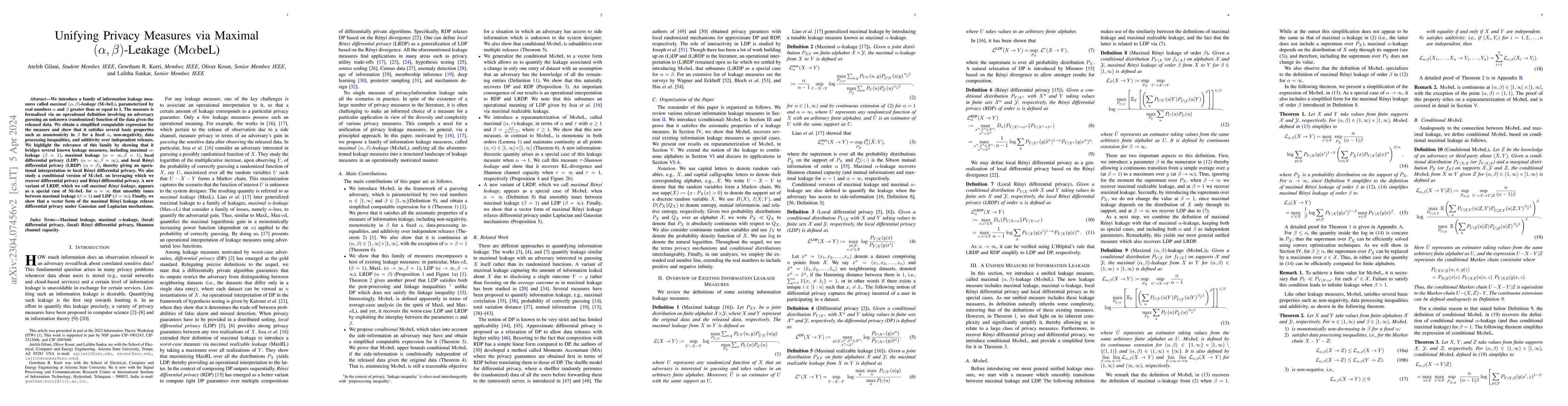 This paper introduces maximal $(\alpha,\beta)$-leakage (M$\alpha$beL), a new family of information leakage measures that unifies several known privacy notions by bridging maximal $\alpha$-leakage, maximal leakage, local differential privacy, and local Renyi differential privacy. It also proposes a new variant called maximal Renyi leakage that smoothly transitions between these established privacy measures.