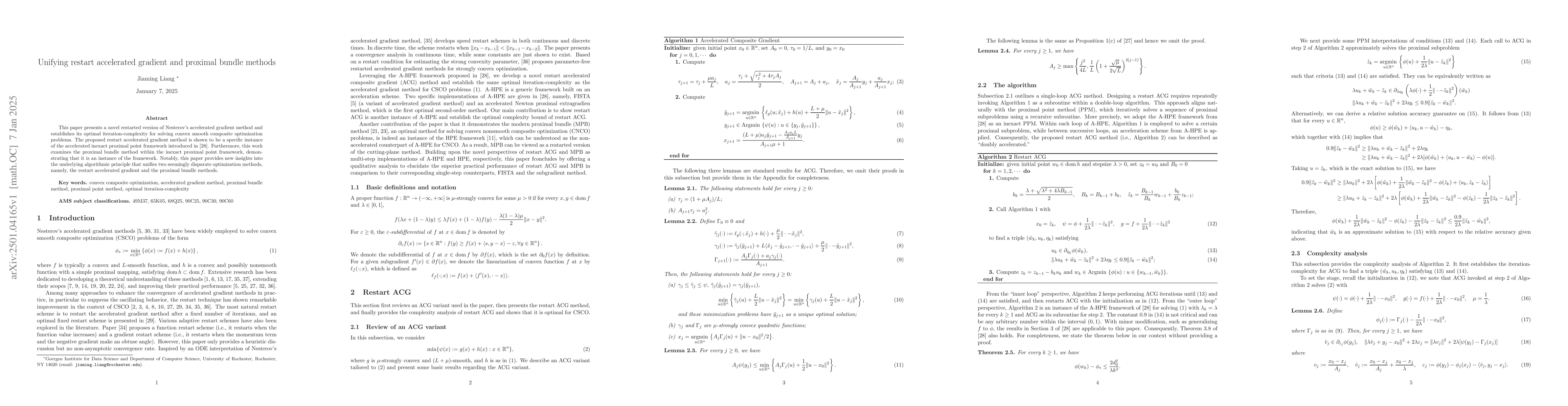 This paper presents a novel restarted version of Nesterov's accelerated gradient method and establishes its optimal iteration-complexity for solving convex smooth composite optimization problems. The proposed restart accelerated gradient method is shown to be a specific instance of the accelerated inexact proximal point framework introduced in "An accelerated hybrid proximal extragradient method for convex optimization and its implications to second-order methods" by Monteiro and Svaiter, SIAM Journal on Optimization, 2013. Furthermore, this work examines the proximal bundle method within the inexact proximal point framework, demonstrating that it is an instance of the framework. Notably, this paper provides new insights into the underlying algorithmic principle that unifies two seemingly disparate optimization methods, namely, the restart accelerated gradient and the proximal bundle methods.