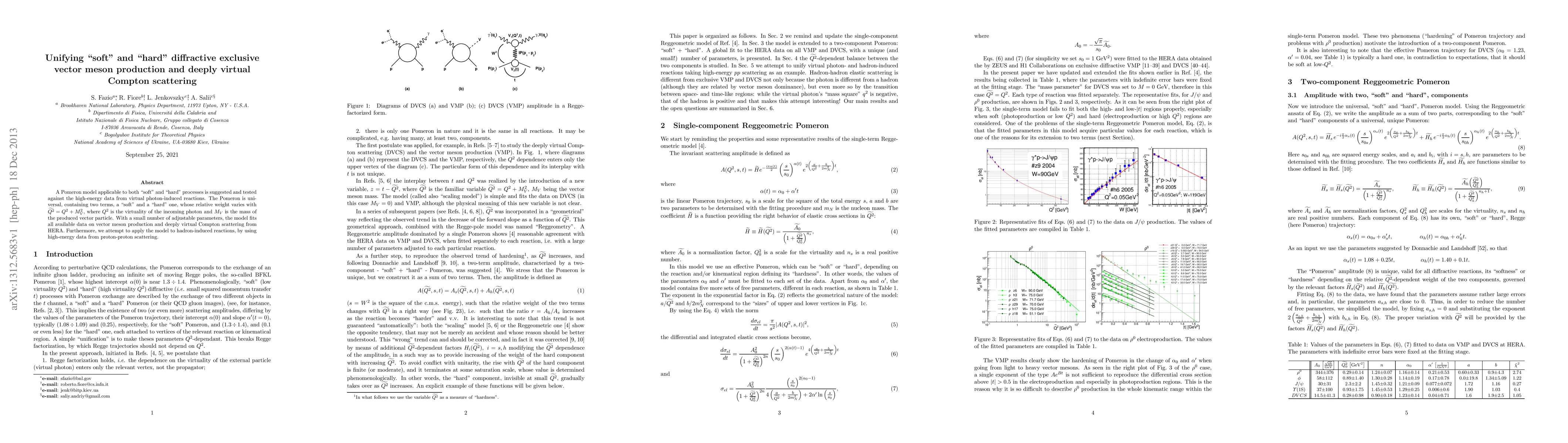 This paper proposes a unified Pomeron model for both soft and hard diffractive processes in high-energy reactions, fitting data from virtual photon-induced reactions and proton-proton scattering. The model's success in describing vector meson production and deeply virtual Compton scattering suggests its potential for broader applications.