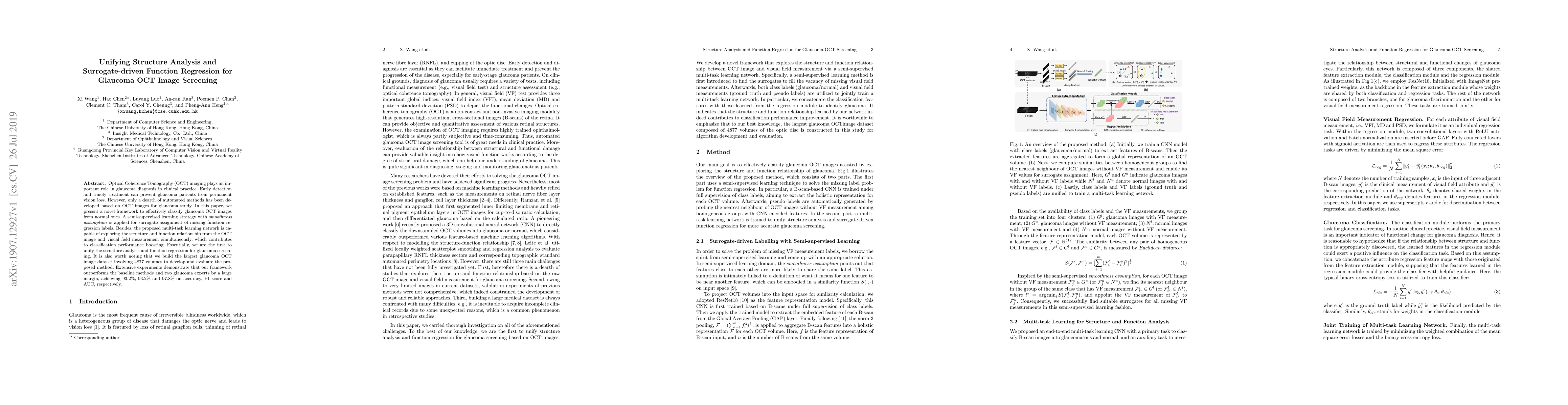This paper introduces a novel framework for classifying glaucoma OCT images using a semi-supervised learning approach and a multi-task learning network that integrates structure analysis and function regression, achieving superior performance over baseline methods and experts. The study also builds the largest glaucoma OCT dataset for evaluation.