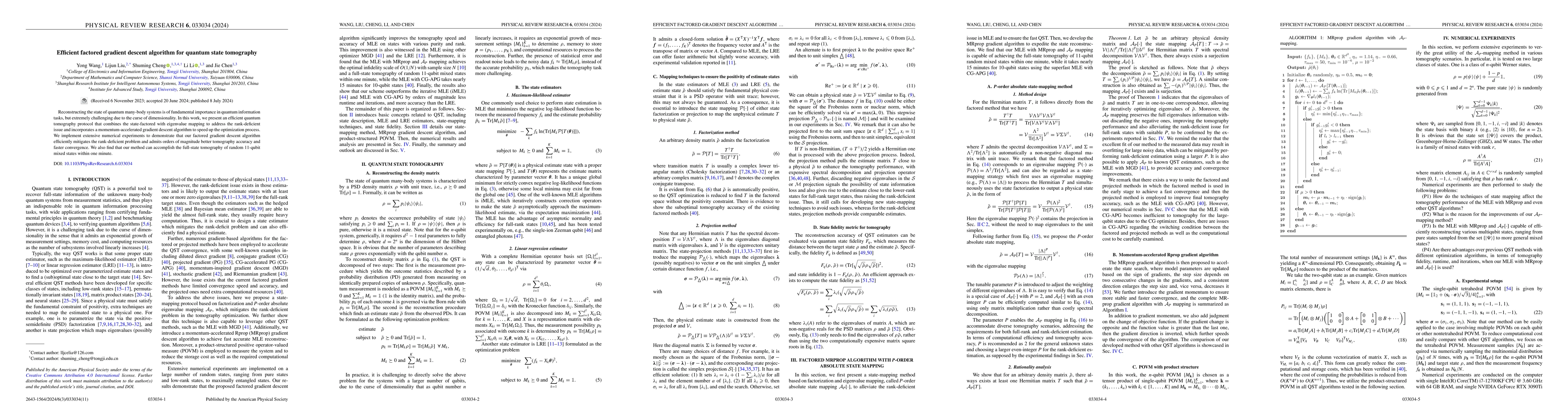 This paper presents an efficient quantum state tomography method that unifies factored and projected gradient descent to address rank deficiency and employs a momentum-accelerated Rprop algorithm for faster optimization. The proposed approach ensures state matrix positivity and rank, significantly improving tomography accuracy and demonstrating faster convergence and robustness.