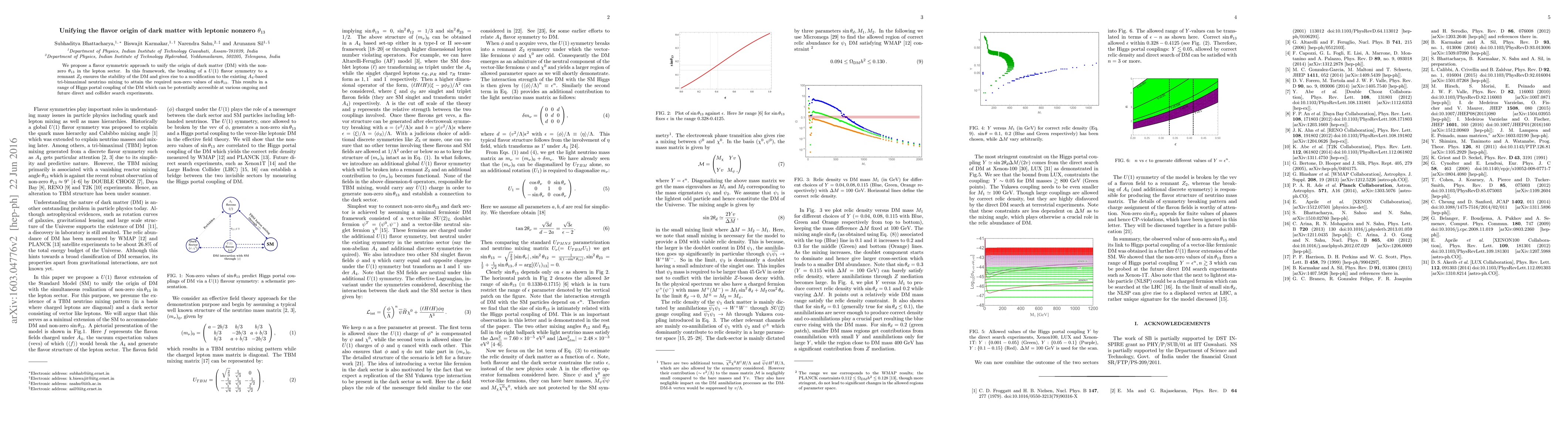 This paper proposes a flavor symmetric approach to unify dark matter with the non-zero $\theta_{13}$ angle in leptons. The breaking of a $U(1)$ flavor symmetry leads to stable dark matter and modifies neutrino mixing to achieve the desired $\sin \theta_{13}$, potentially detectable in future experiments.