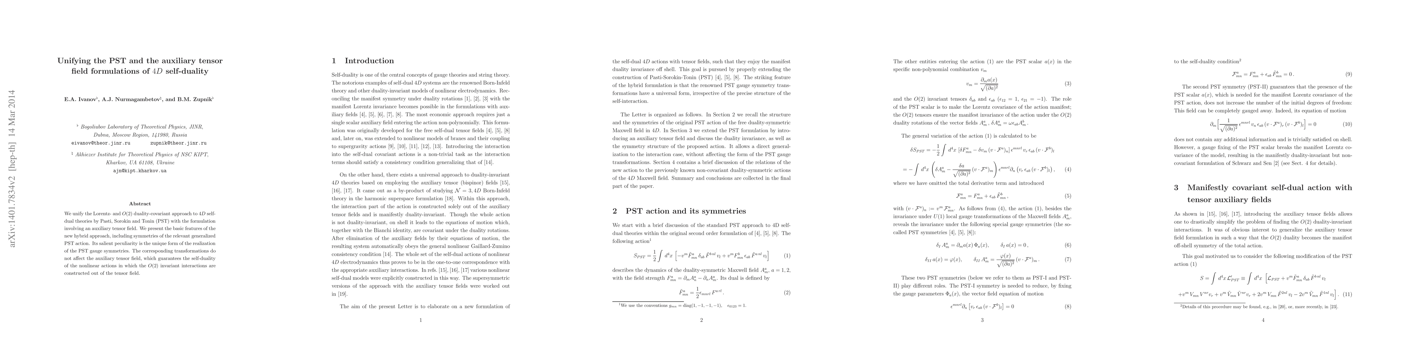 The paper unifies two approaches to 4D self-duality in physics, combining Lorentz- and O(2) duality-covariant methods with an auxiliary tensor field formulation, offering a new perspective on the underlying symmetries and interactions.