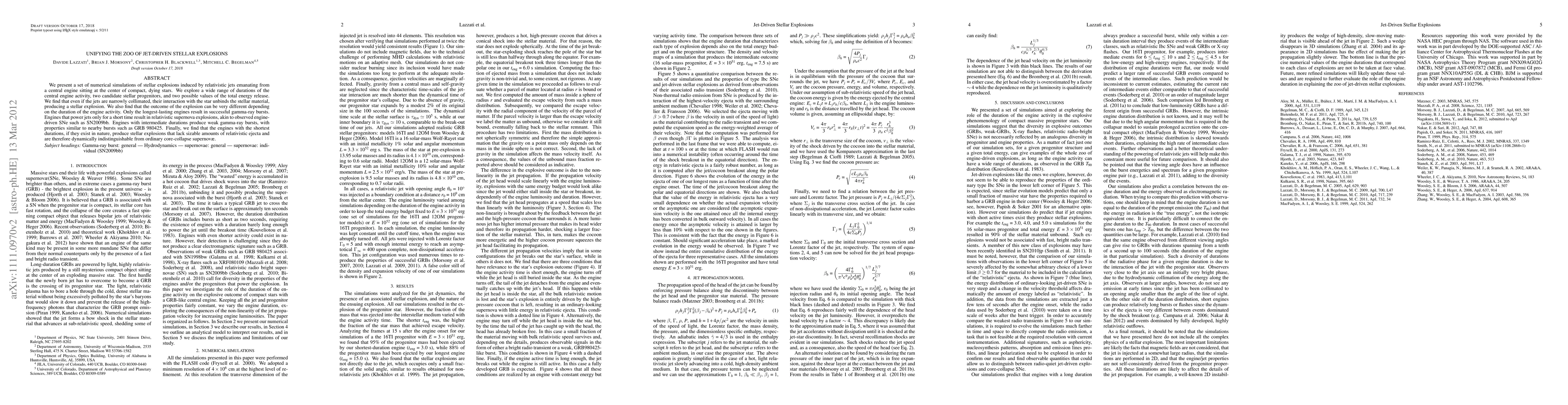 We present a set of numerical simulations of stellar explosions induced by relativistic jets emanating from a central engine sitting at the center of compact, dying stars. We explore a wide range of durations of the central engine activity, two candidate stellar progenitors, and two possible values of the total energy release. We find that even if the jets are narrowly collimated, their interaction with the star unbinds the stellar material, producing a stellar explosion. We also find that the outcome of the explosion can be very different depending on the duration of the engine activity. Only the longest-lasting engines result in successful gamma-ray bursts. Engines that power jets only for a short time result in relativistic supernova explosions, akin to observed engine-driven SNe such as SN2009bb. Engines with intermediate durations produce weak gamma-ray bursts, with properties similar to nearby bursts such as GRB 980425. Finally, we find that the engines with the shortest durations, if they exist in nature, produce stellar explosions that lack sizable amounts of relativistic ejecta and are therefore dynamically indistinguishable from ordinary core-collapse supernovae.