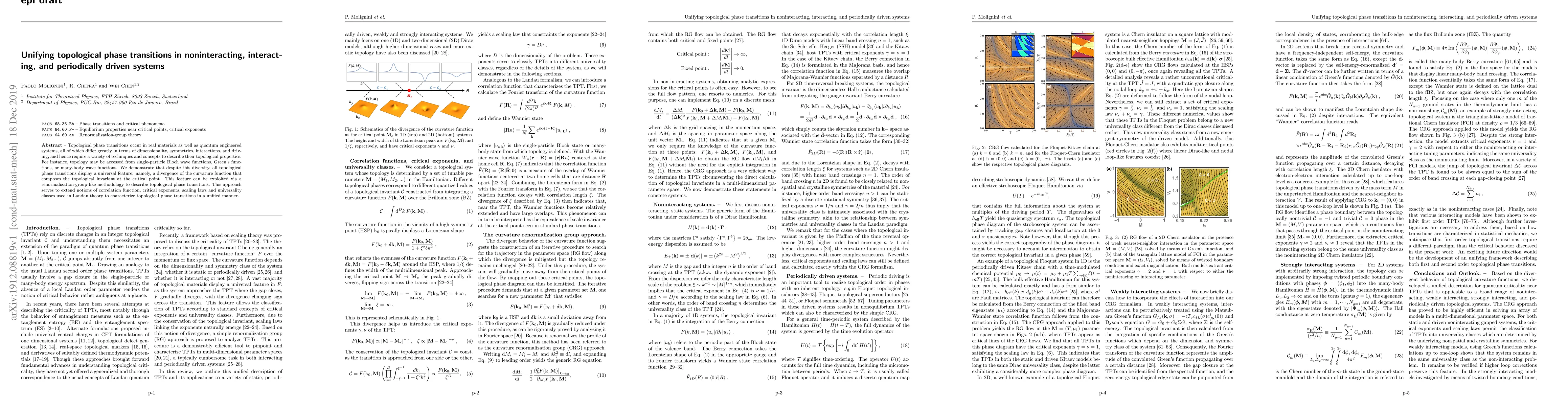 This paper demonstrates that despite the diverse nature of topological phase transitions in various systems, they all exhibit a universal divergence in the curvature function at critical points. This insight allows for a unified renormalization-group-like approach to describe these transitions, extending traditional Landau theory concepts to encompass topological properties.