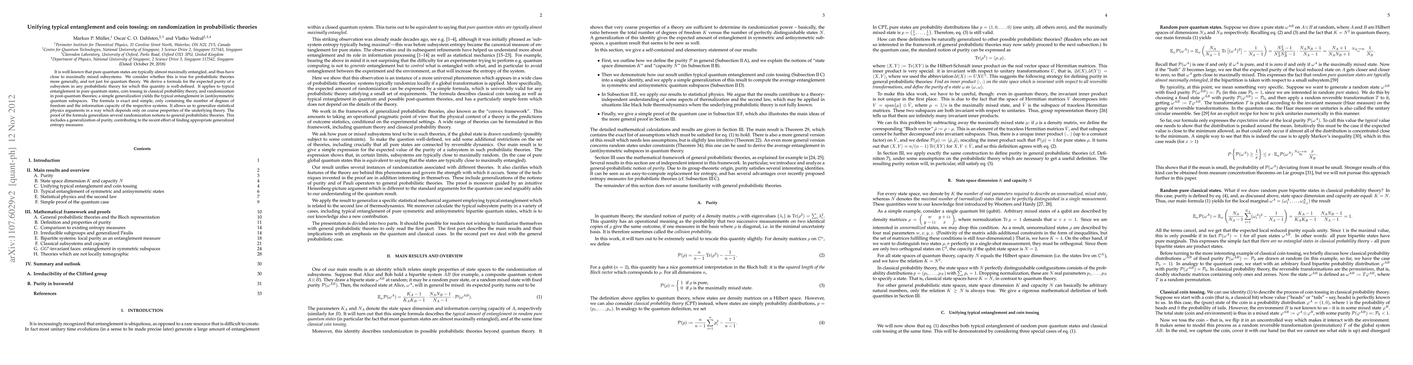 This paper derives a formula for the expected purity of subsystems in probabilistic theories, showing its applicability to quantum entanglement, classical coin tossing, and post-quantum randomization. The formula is exact and depends only on the number of degrees of freedom and information capacity, facilitating generalizations of statistical physics arguments.