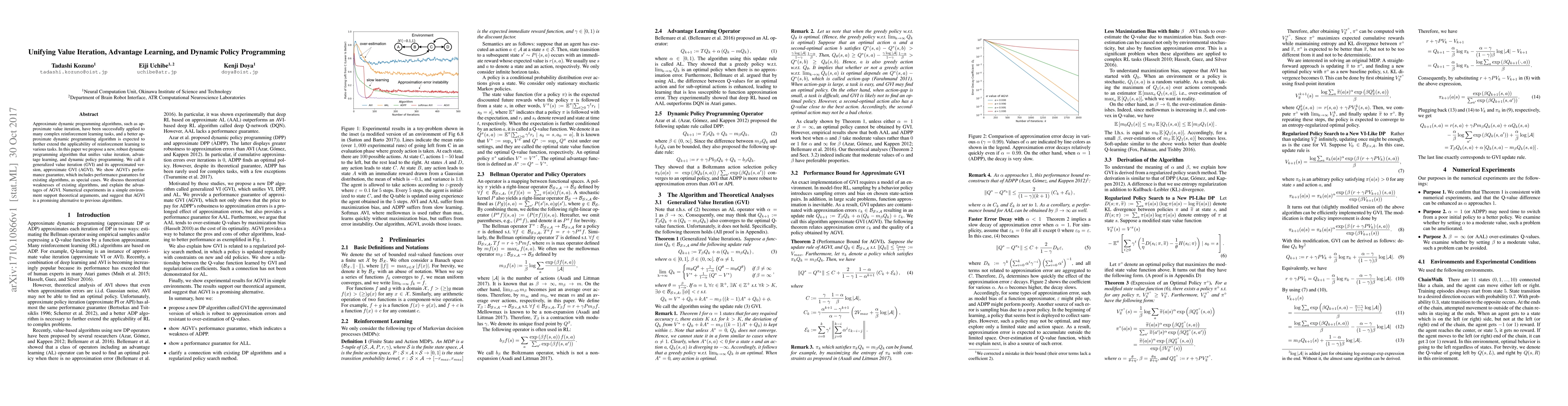 This paper introduces generalized value iteration (GVI) and its approximate version, AGVI, to unify value iteration, advantage learning, and dynamic policy programming. The authors demonstrate AGVI's performance guarantees, including existing algorithms as special cases, and suggest it as a promising alternative through theoretical analysis and numerical experiments.