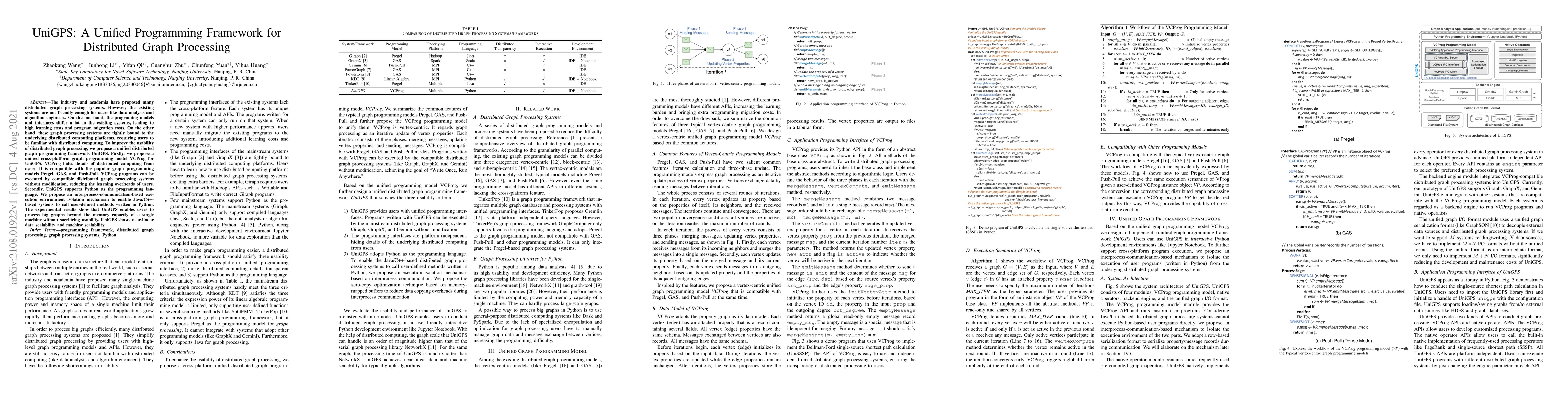 UniGPS introduces a unified programming framework for distributed graph processing, featuring a cross-platform graph programming model VCProg that abstracts distributed computing details, and supports Python for user-friendly programming. Experimental results demonstrate near-linear scalability and usability improvements for big graph processing.