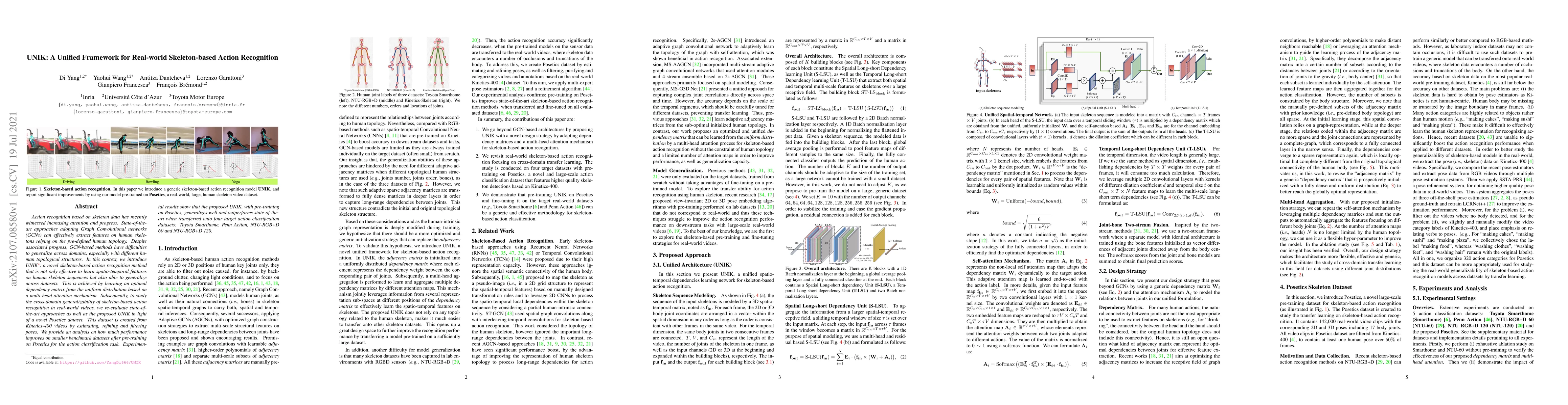 Action recognition based on skeleton data has recently witnessed increasing attention and progress. State-of-the-art approaches adopting Graph Convolutional networks (GCNs) can effectively extract features on human skeletons relying on the pre-defined human topology. Despite associated progress, GCN-based methods have difficulties to generalize across domains, especially with different human topological structures. In this context, we introduce UNIK, a novel skeleton-based action recognition method that is not only effective to learn spatio-temporal features on human skeleton sequences but also able to generalize across datasets. This is achieved by learning an optimal dependency matrix from the uniform distribution based on a multi-head attention mechanism. Subsequently, to study the cross-domain generalizability of skeleton-based action recognition in real-world videos, we re-evaluate state-of-the-art approaches as well as the proposed UNIK in light of a novel Posetics dataset. This dataset is created from Kinetics-400 videos by estimating, refining and filtering poses. We provide an analysis on how much performance improves on smaller benchmark datasets after pre-training on Posetics for the action classification task. Experimental results show that the proposed UNIK, with pre-training on Posetics, generalizes well and outperforms state-of-the-art when transferred onto four target action classification datasets: Toyota Smarthome, Penn Action, NTU-RGB+D 60 and NTU-RGB+D 120.