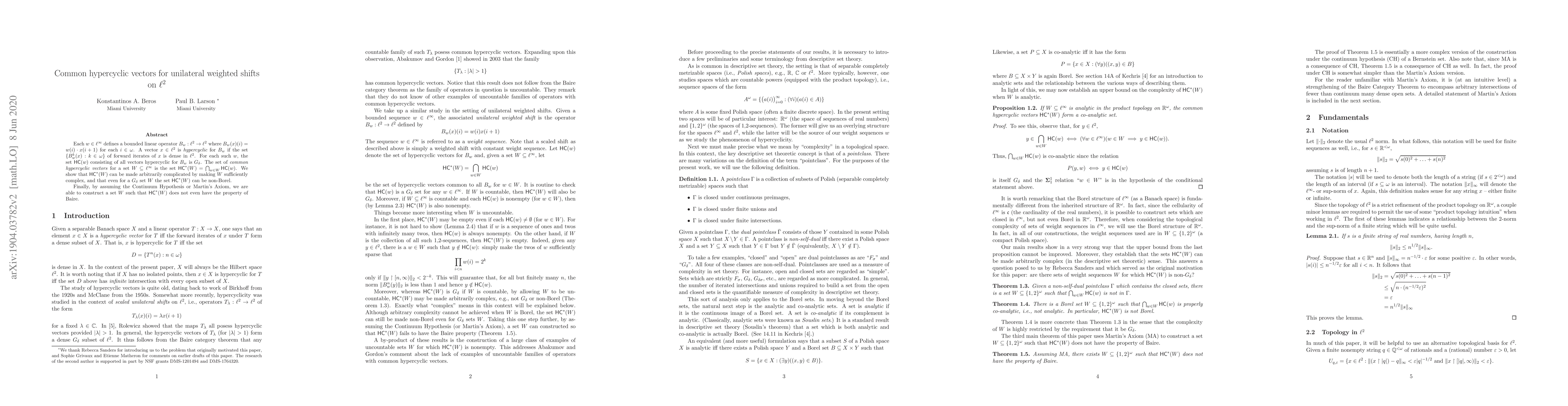 Given a unilateral shift $B_w$ (determined by a bounded sequence $w$), a sequence $x \in \ell^2$ is "hypercyclic" for $w$ iff the forward iterates of $x$ under $B_w$ are dense in $\ell^2$. We show that it is possible to make the set of $x \in \ell^2$ which are simultaneously hypercyclic for all $w$ in a fixed $W \subseteq \ell^\infty$ arbitrarily complicated by choosing $W$ appropriately.