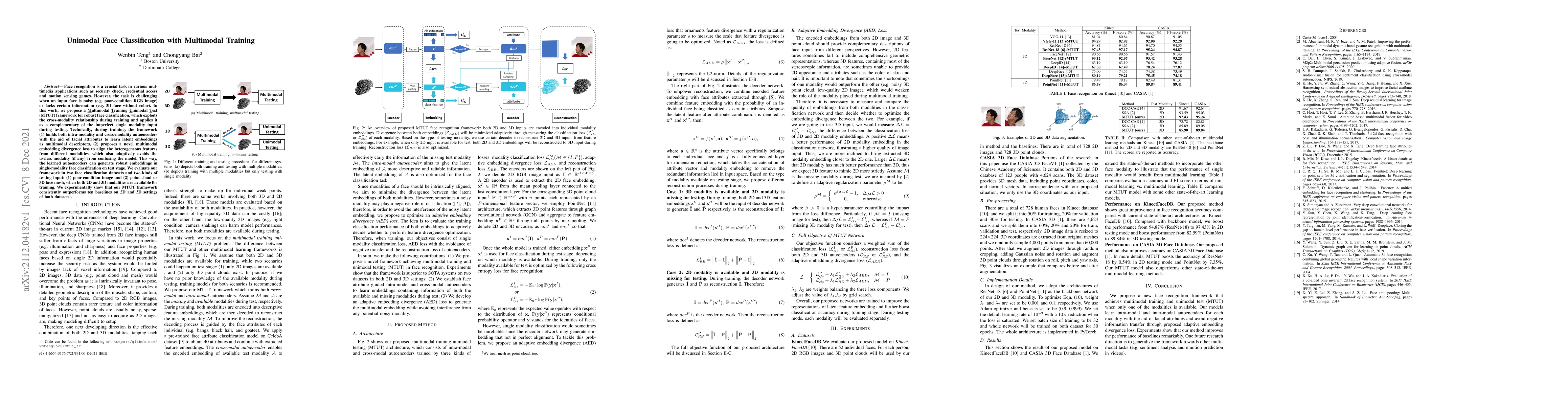 A new framework called Multimodal Training Unimodal Test (MTUT) improves face classification accuracy by leveraging cross-modality relationships during training and using them as a complement in single modality input testing.