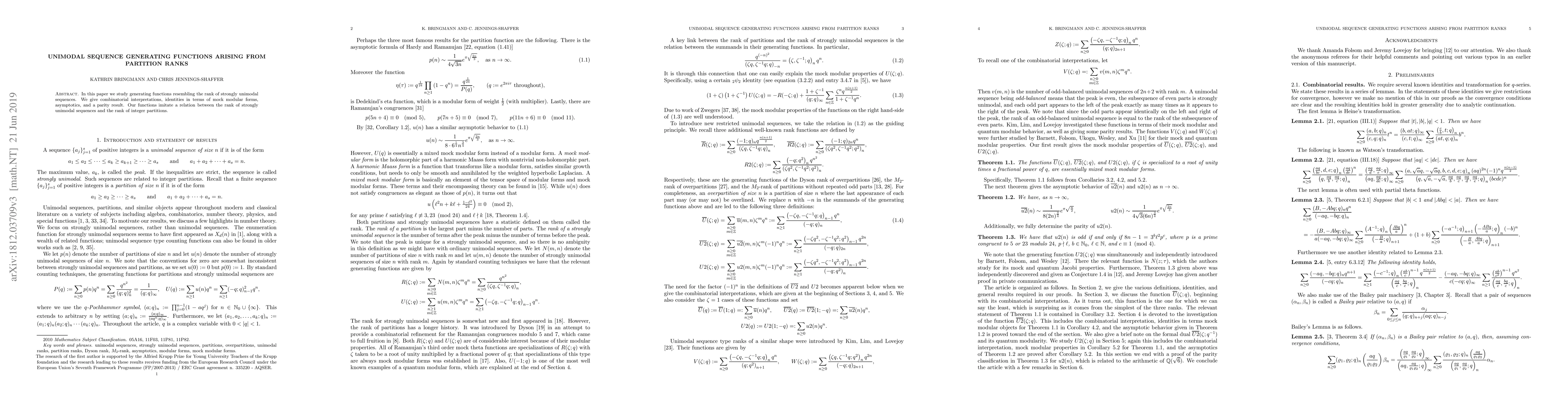 This paper studies generating functions related to strongly unimodal sequences and their connection to integer partitions, providing combinatorial interpretations, identities, asymptotics, and a parity result.