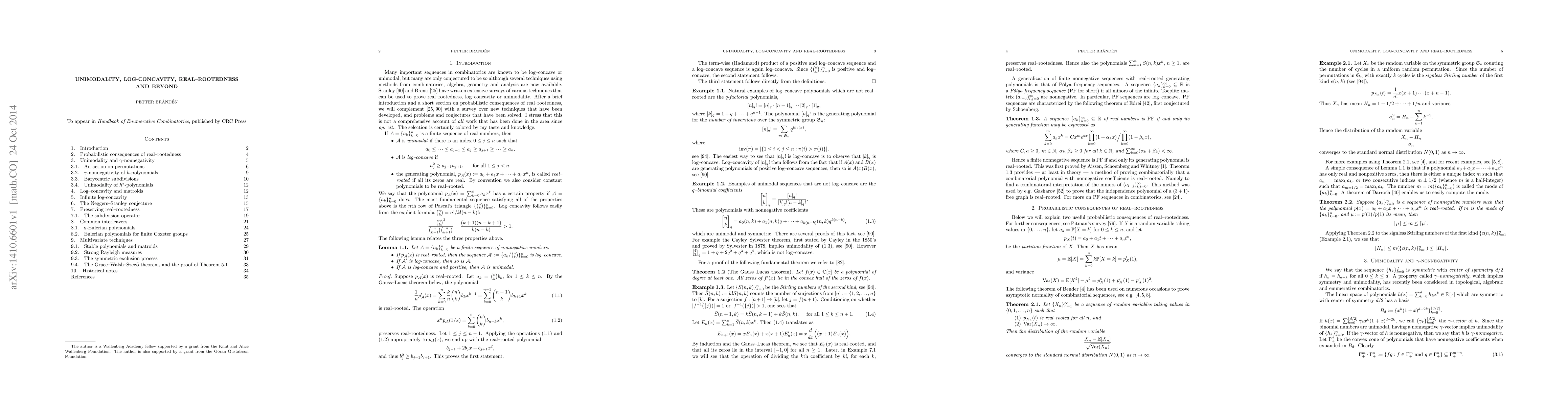 This is a survey on recent developments on unimodality, log-concavity and real-rootedness in combinatorics. Stanley and Brenti have written extensive surveys of various techniques that can be used to prove real-rootedness, log-concavity or unimodality. After a brief introduction, we will complement these surveys with a survey over some new techniques that have been developed, as well as problems and conjectures that have been solved. This is a draft of a chapter to appear in Handbook of Enumerative Combinatorics, published by CRC Press.