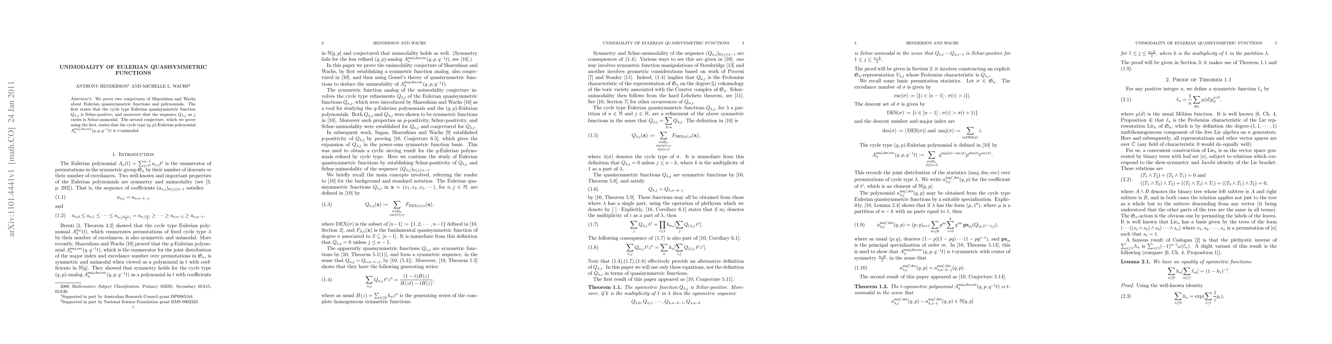 This paper proves two conjectures by Shareshian and Wachs regarding Eulerian quasisymmetric functions and polynomials. It establishes that the cycle type Eulerian quasisymmetric function is Schur-positive and Schur-unimodal, and that the cycle type $(q,p)$-Eulerian polynomial is $t$-unimodal.