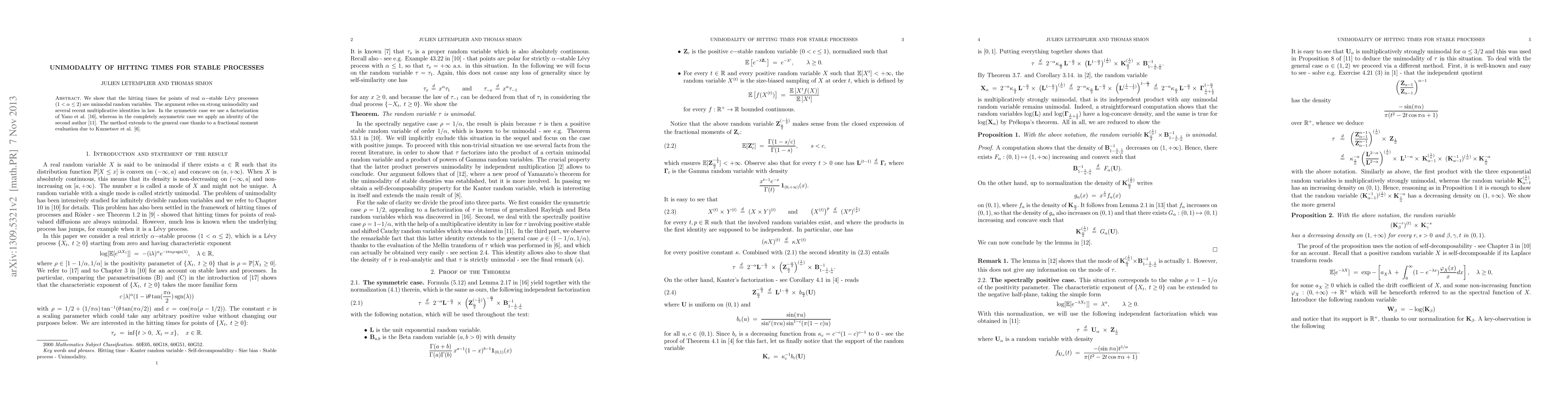 This paper demonstrates that hitting times for points in real $\alpha$-stable Lévy processes ($1<\alpha\le 2$) are unimodal random variables, utilizing strong unimodality and recent multiplicative identities in law. The approach varies for symmetric and asymmetric cases, extending to general cases via a fractional moment evaluation.