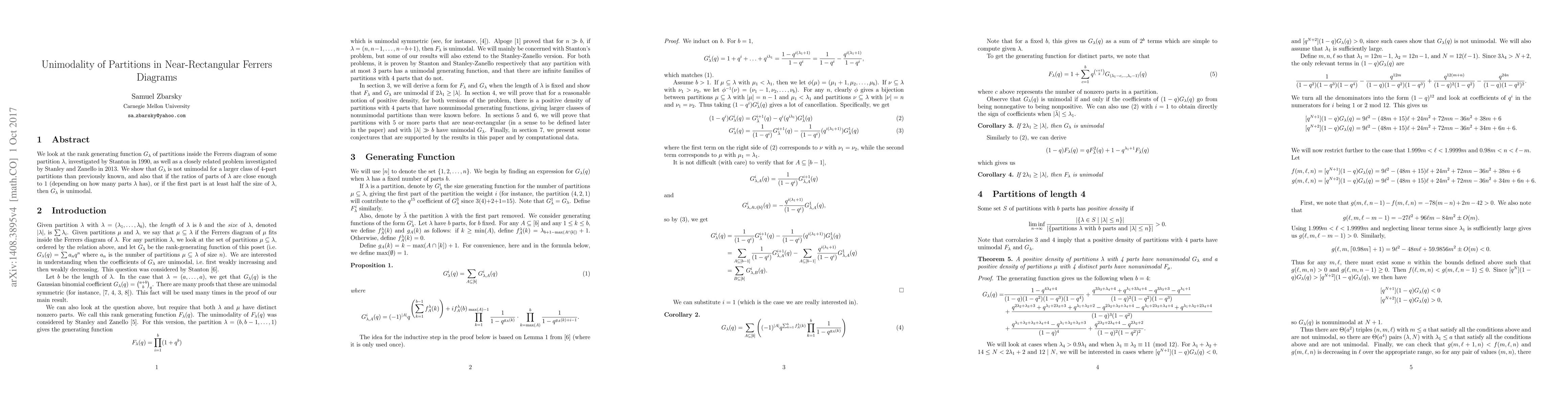 We look at the rank generating function $G_\lambda$ of partitions inside the Ferrers diagram of some partition $\lambda$, investigated by Stanton in 1990, as well as a closely related problem investigated by Stanley and Zanello in 2013. We show that $G_\lambda$ is not unimodal for a larger class of 4-part partitions than previously known, and also that if the ratios of parts of $\lambda$ are close enough to 1 (depending on how many parts $\lambda$ has), or if the first part is at least half the size of $\lambda$, then $G_\lambda$ is unimodal.